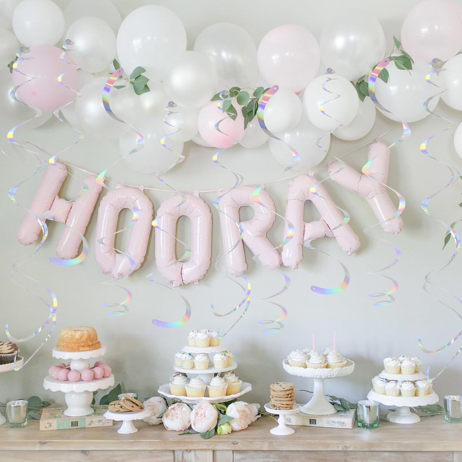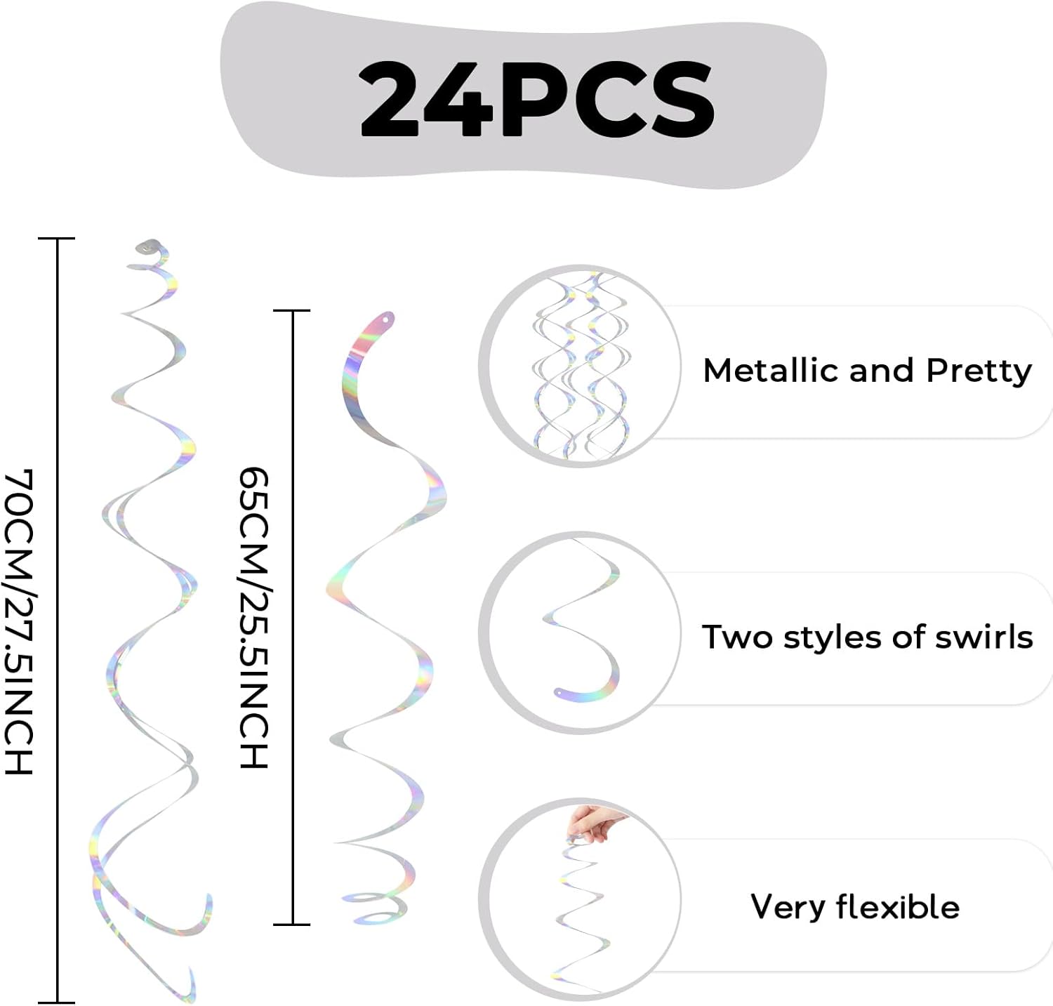24 PCS Iridescent Hanging Swirl, Shinny Holographic Ceiling Decorations, Plastic Streamer Party Decorations with Double-Swirls and Single-Swirls for Birthday Decorations, Wedding, Baby Shower