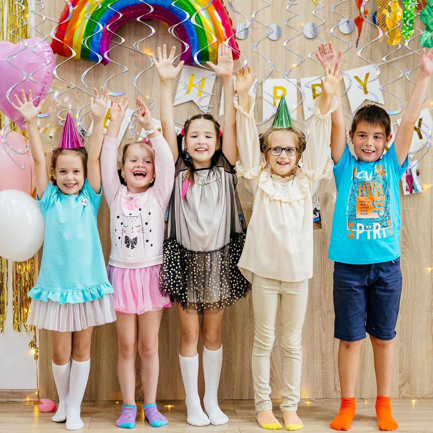 - Assemble Easy: The Iridescent hanging swirls have a small ring on them, just tear the swirl slowly along the edge and hang it on the hook to complete a simple party decoration. Time saving and easy to operate.