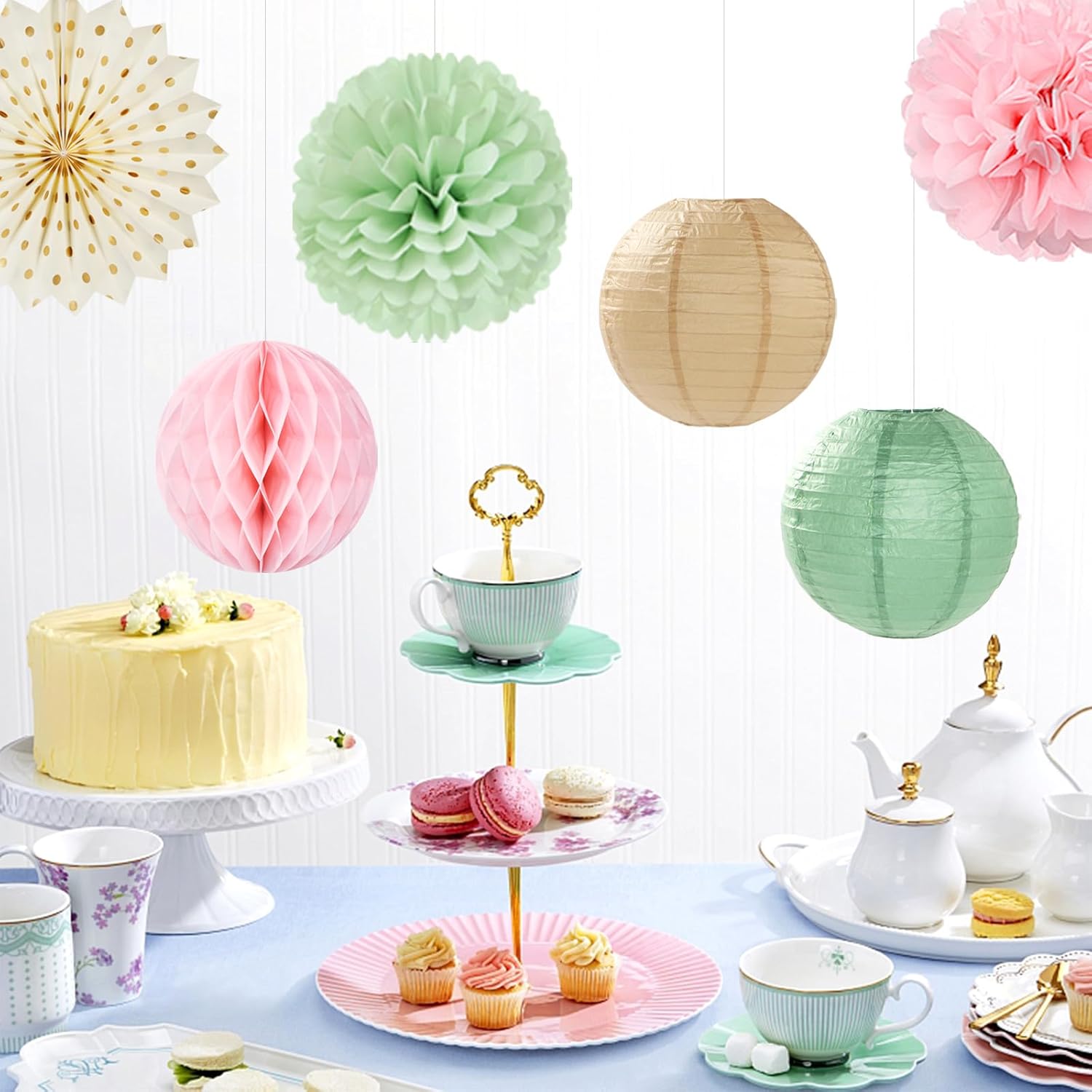- 【Package Contains】The sage green pink beige champagne party kits include 6pcs tissue paper flowers: 3pcs 10" and 3pcs 12" in three color, 2pcs 8inch paper honeycom ball,4pcs 8inch paper lantern, 2pcs 12inch paper fan.