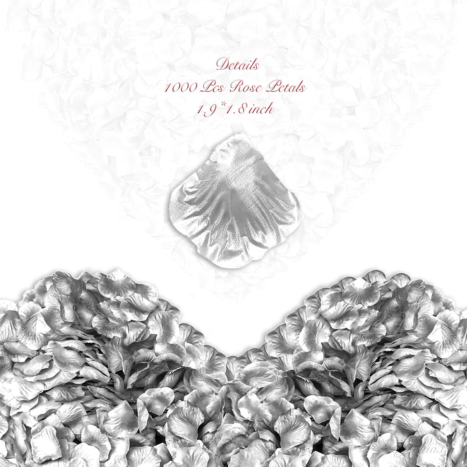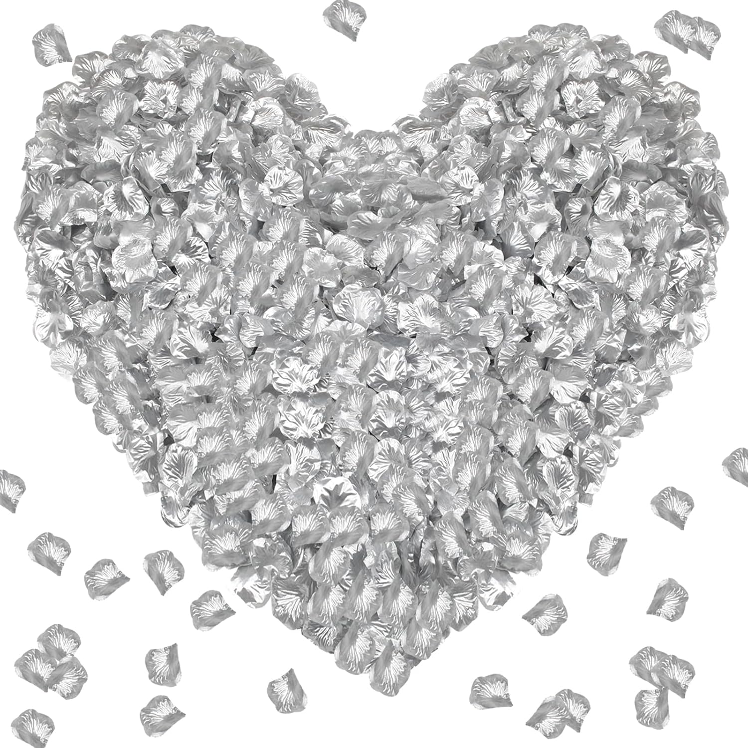 1000Pieces Rose Petals, Artificial Flower Petals Fake Rose Petals for Romantic Night,Wedding,Proposal Anniversary Flower Decorations (Silver)