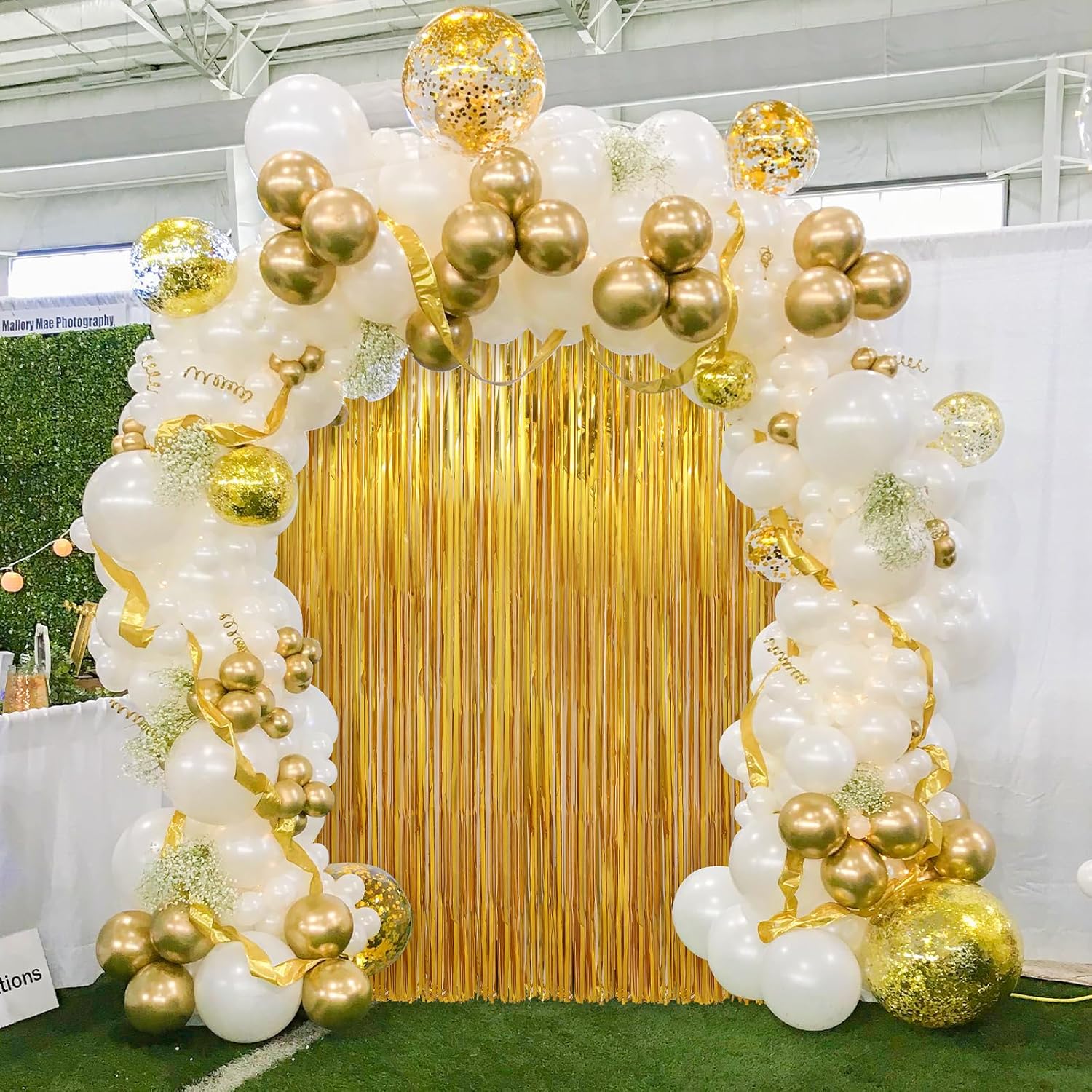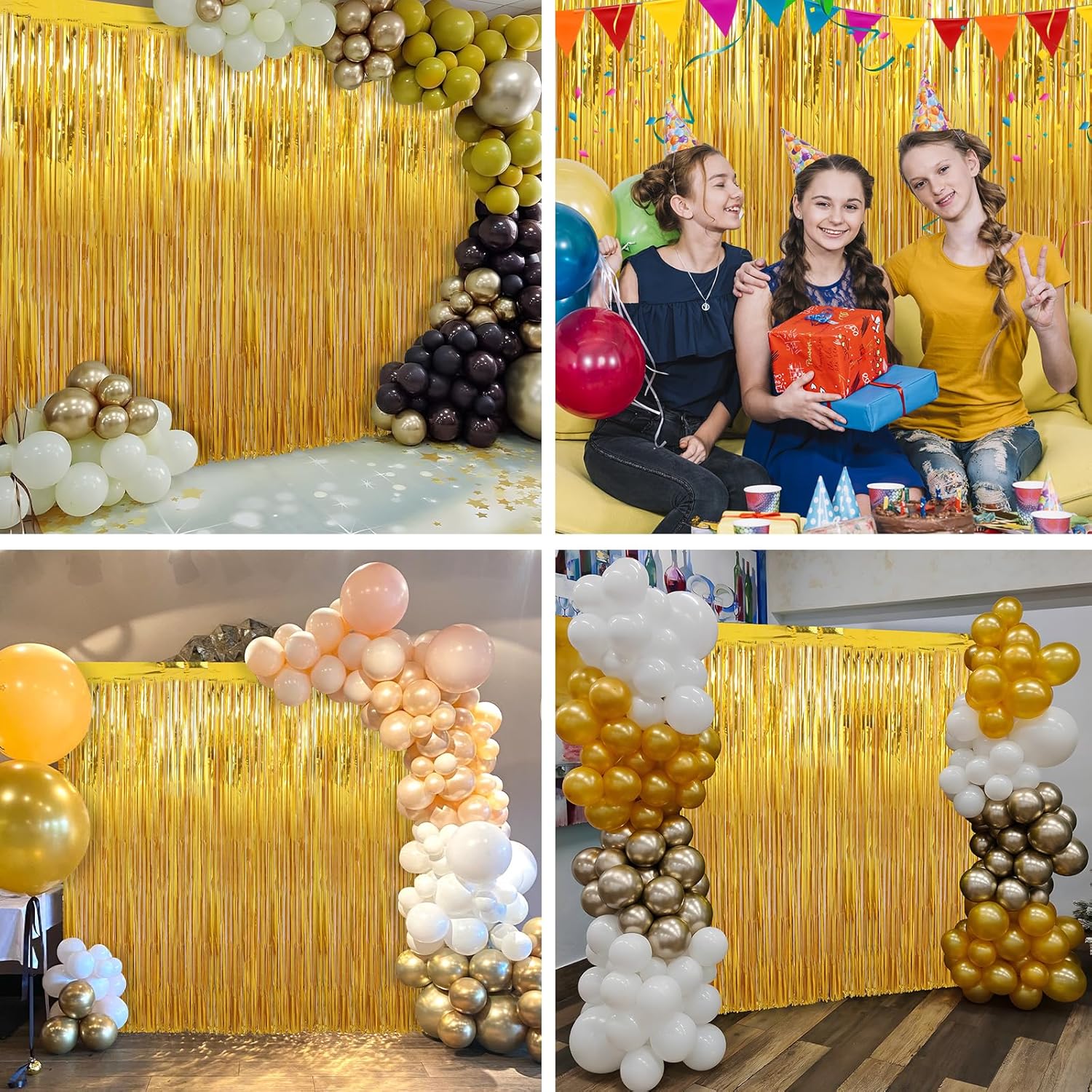 3 Pack Gold Foil Fringe Curtains Streamers Party Decorations 3.3 x 8.2 ft, Gold Tinsel Curtain Fringe Backdrop for Parties, Door Fringe Birthday Streamers, Photo Booth Backdrops, Party Decor