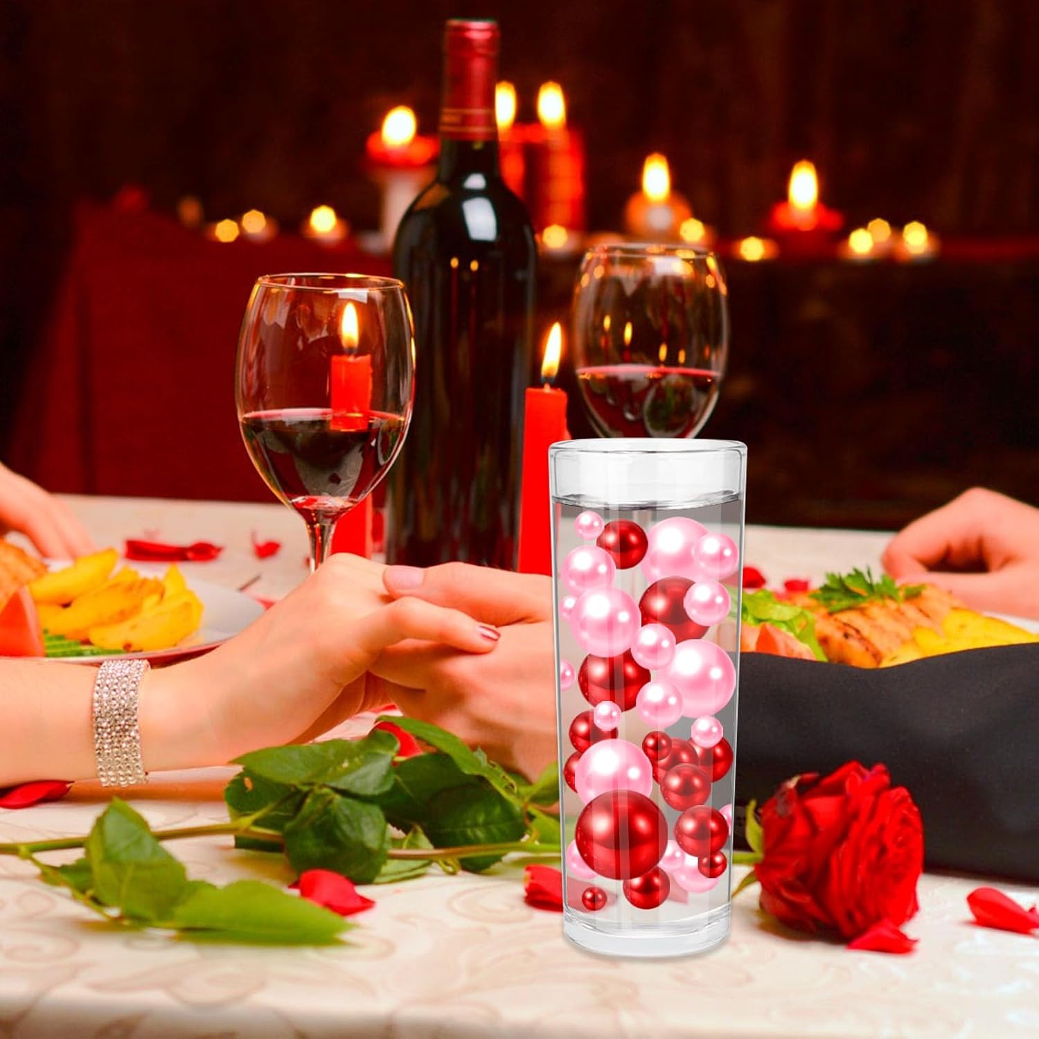 100PCS Red Pink Faux Pearls Beads for Centerpiece Vases, Vase Filler Faux Pearls, No Holes Filler Beads for Party Anniversary Valentine's Day Table Decor, 14/20/30mm