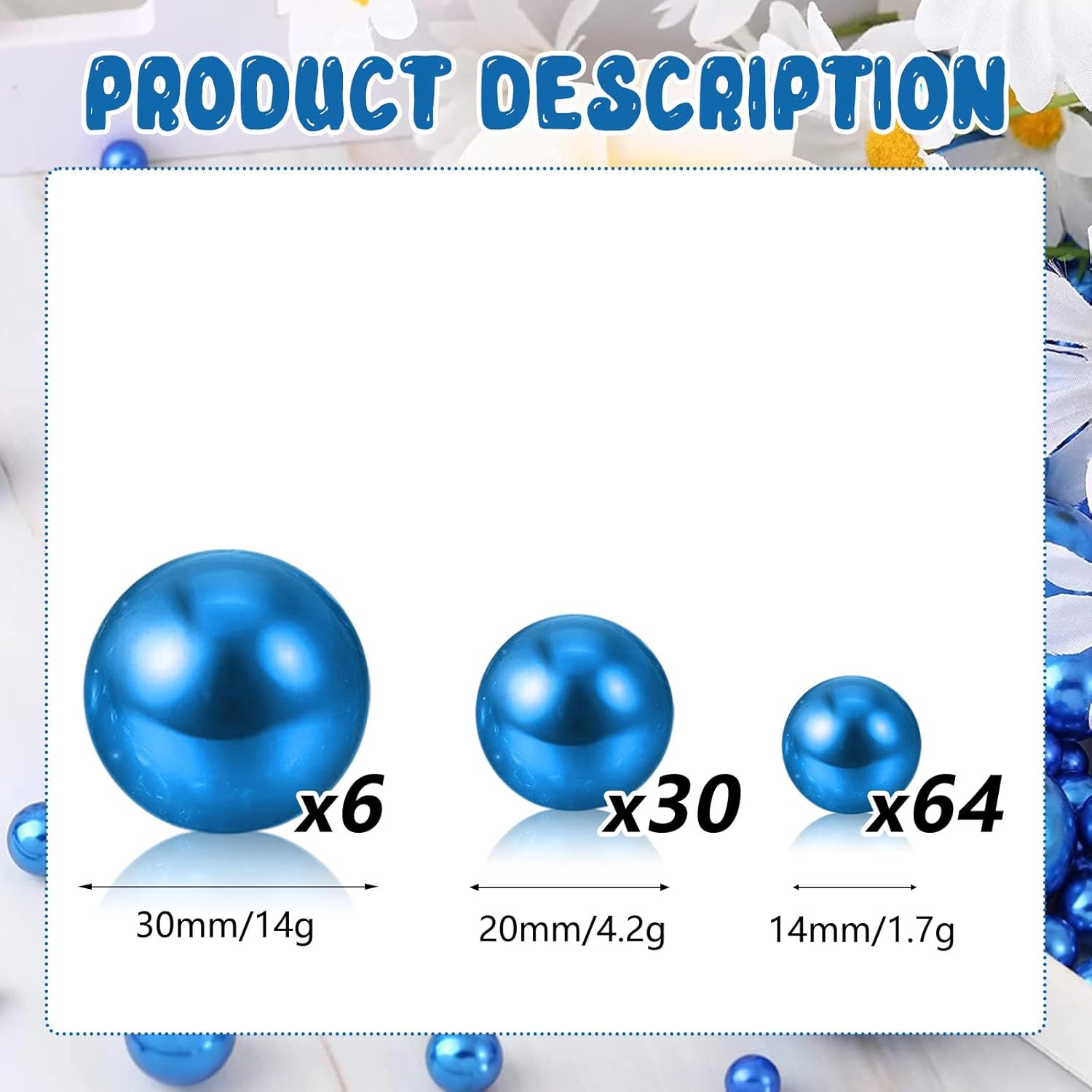 100PCS Blue Faux Pearls Beads for Centerpiece Vases, Vase Filler Faux Pearls, No Holes Filler Beads for Party Anniversary Birthday Wedding Table Decor, 14/20/30mm