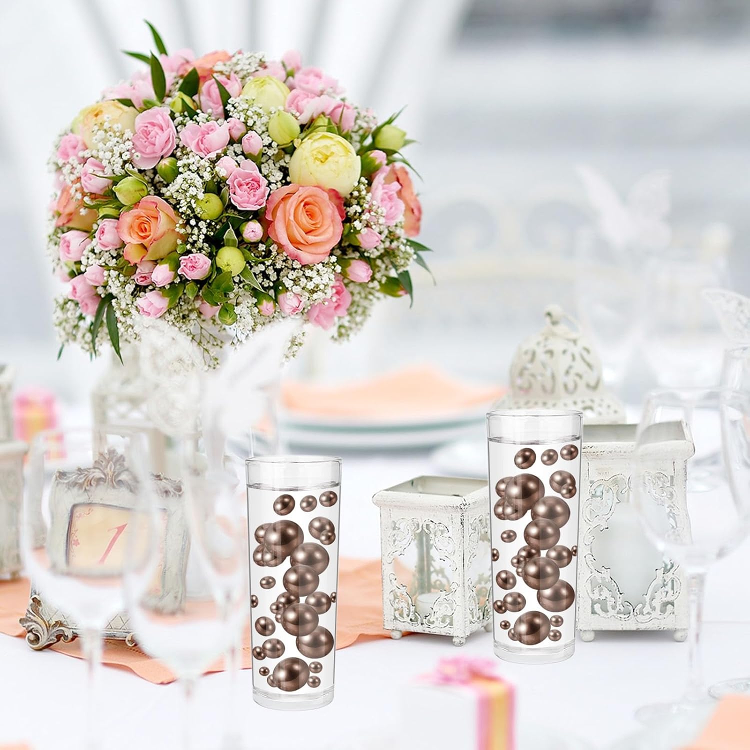 100PCS Brown Faux Pearls Beads for Centerpiece Vases, Vase Filler Faux Pearls, No Holes Filler Beads for Party Anniversary Birthday Wedding Table Decor, 14/20/30mm