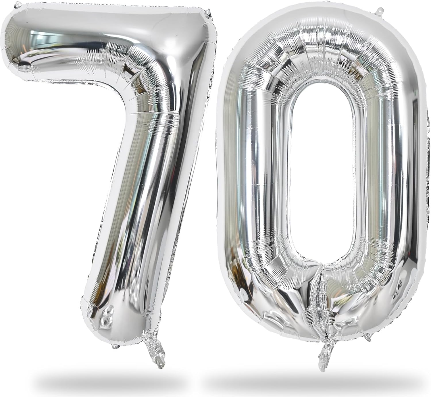 - π Silver Number 70 Balloon: Our package included 40 inch number 7 & 0 balloon and 1pcs straw. Simply inflate the balloon using the straw, and you're ready to party! Silver number foil balloons are the best for women men birthday party decoration.