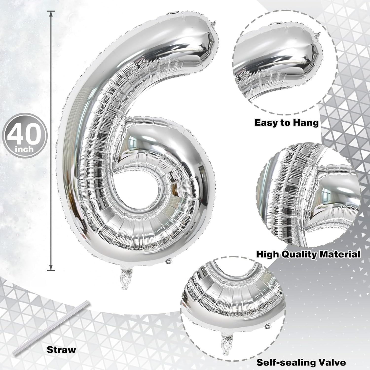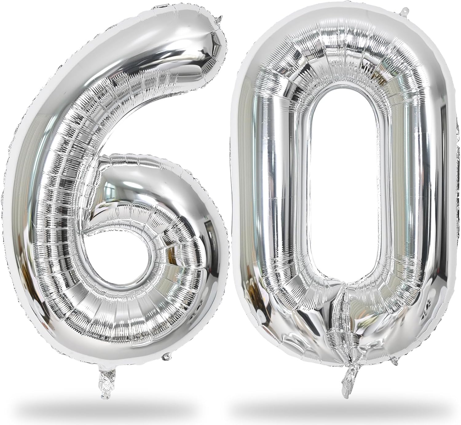 - π Silver Number 60 Balloon: Our package included 40 inch number 6 & 0 balloon and 1pcs straw. Simply inflate the balloon using the straw, and you're ready to party! Silver number foil balloons are the best for women men birthday party decoration.