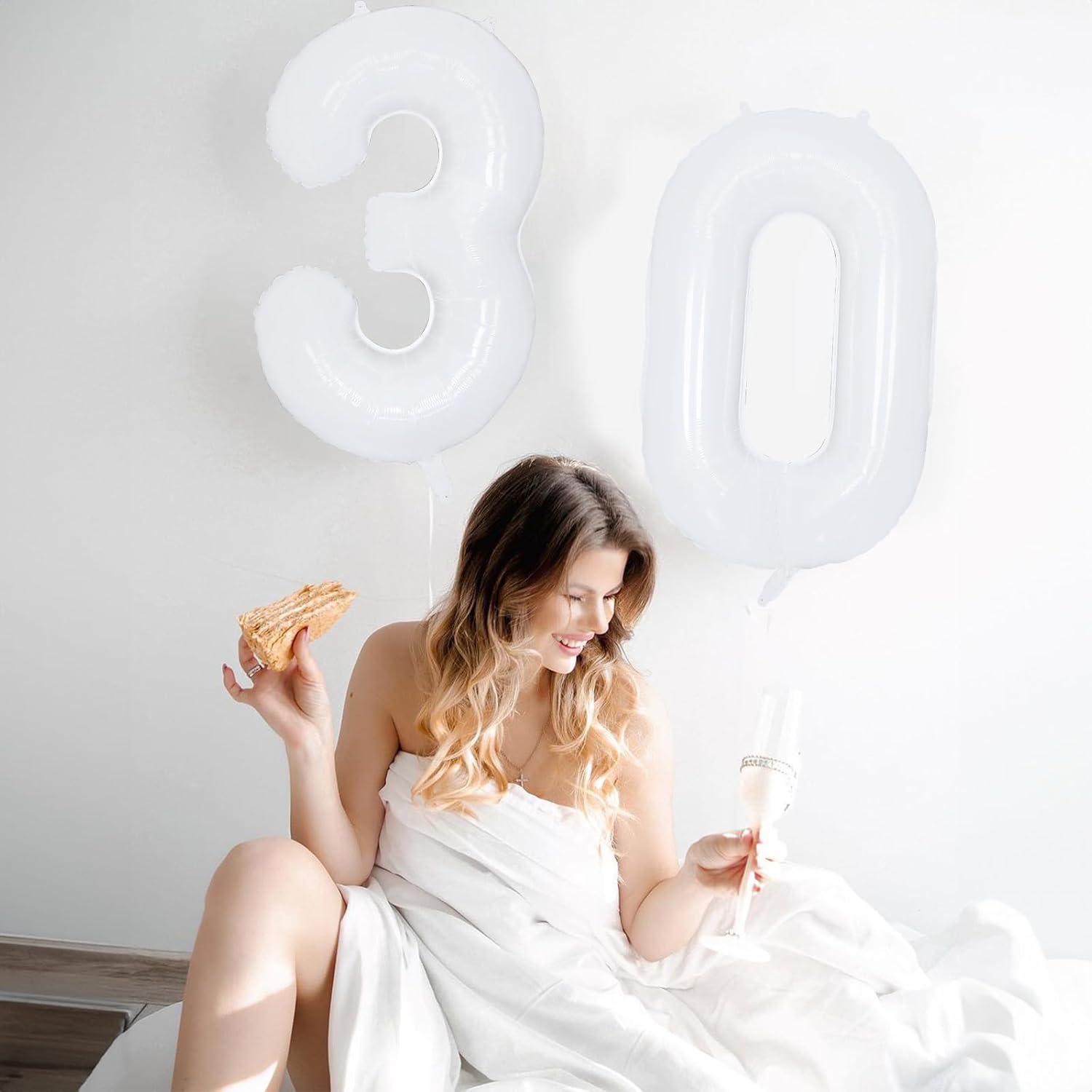 - π White Number 30 Balloon: Our package included 40 inch number 3 & 0 balloon and 1pcs straw. Simply inflate the balloon using the straw, and you're ready to party! White number foil balloons are the best for women men birthday party decoration.