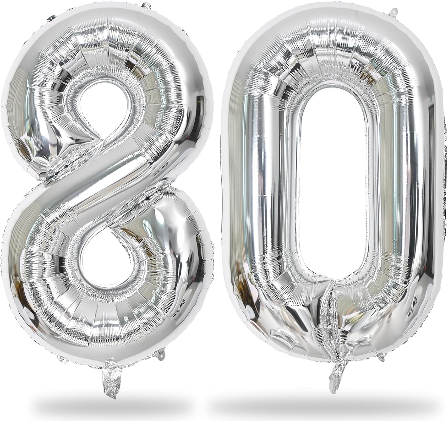 - π Silver Number 80 Balloon: Our package included 40 inch number 8 & 0 balloon and 1pcs straw. Simply inflate the balloon using the straw, and you're ready to party! Silver number foil balloons are the best for women men birthday party decoration.