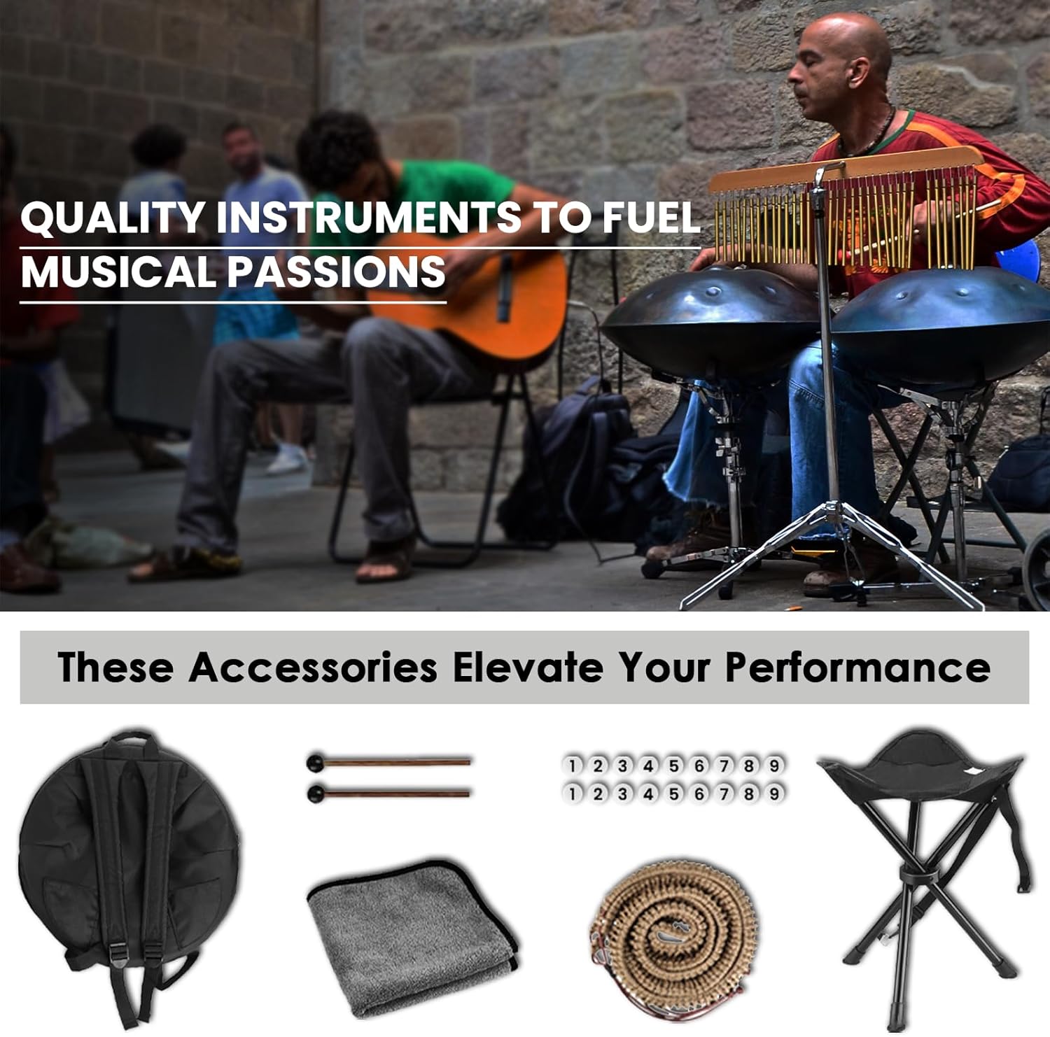 "SINGOFIRE" 10-Notes Handpan Drum, Handpan Drums for Adults, 22-Inch 440Hz D Minor Kurd Handpan, HandPan Instrument with Soft Handpan Bag, 2 Handpan Mallets, Handpan Stand and Dust-Free Cloth(Black)