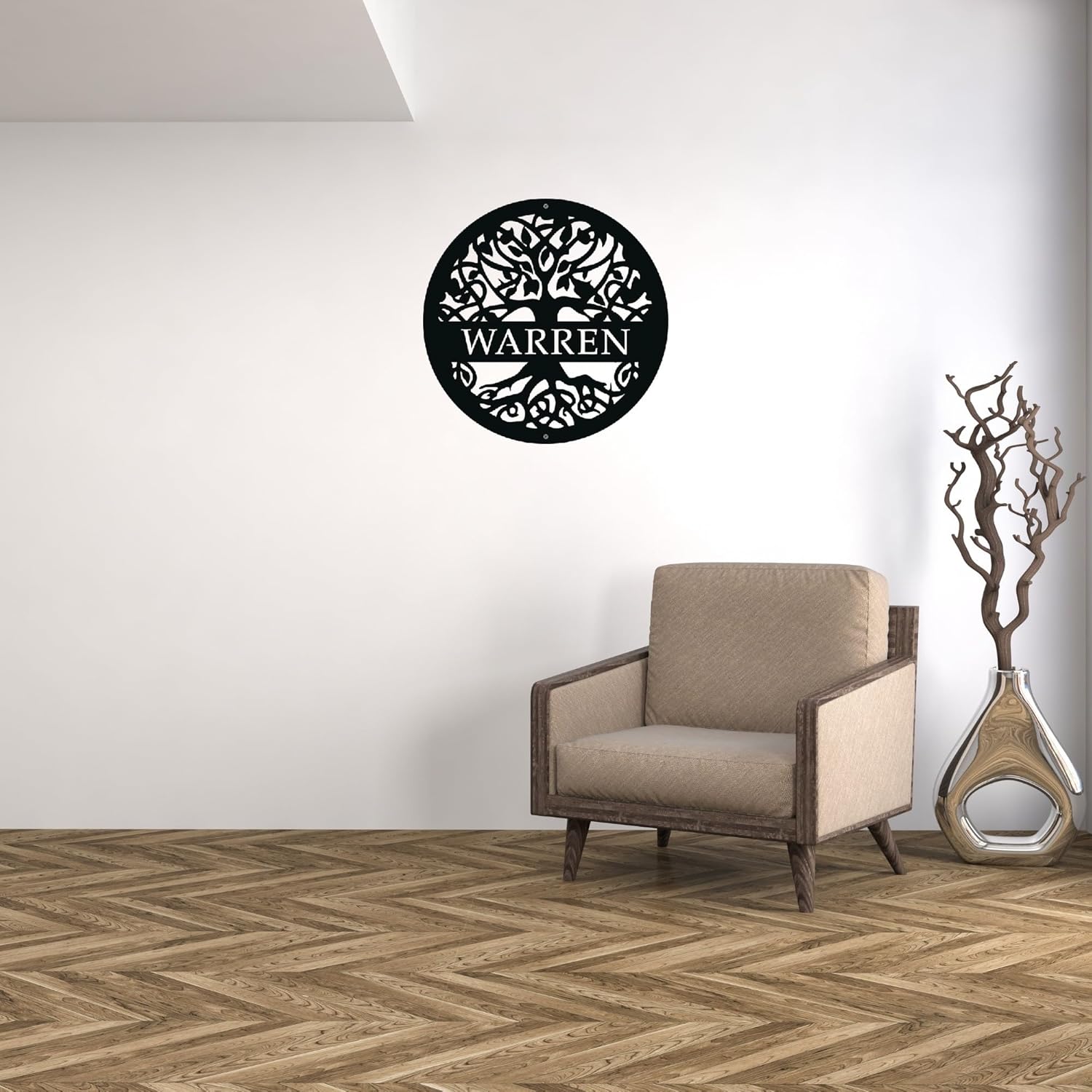 Personalized Tree of Life Metal Sign, Custom Last Name Signs Family Monogram, Made in USA