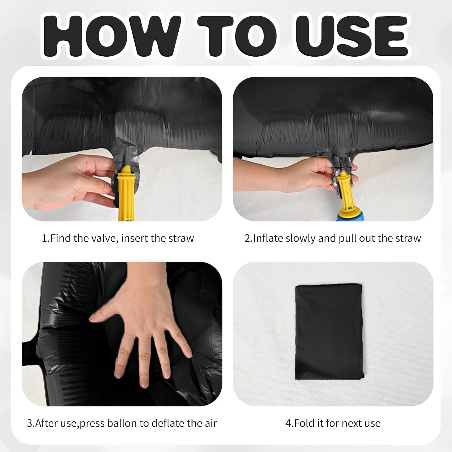 - Easy To Use:These black heart foil balloons are suitable for helium or air. Easy to inflate using the a straw or an air handheld pump. This heart foil balloon adopts self-sealing design, you only need to press the inflation port to seal it after finishing inflate. The balloons are reusable and can be folded up for next use after being deflated with a straw.
