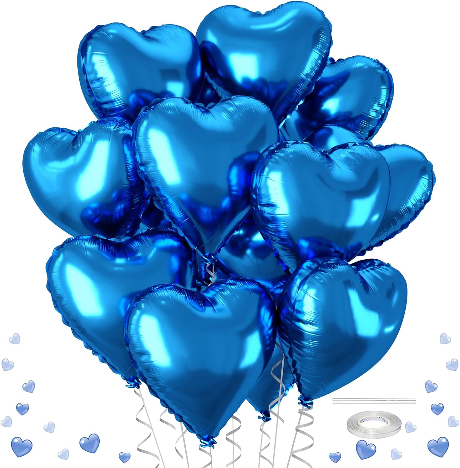 - Blue Heart Balloons:This 18 inches heart shaped balloons includes 12* blue heart balloons,1* blue ribbon, 1*straw, adding romance and warmth to your celebration. These large heart balloons will be the highlight of your party decorations, creating an atmosphere of love for everyone.