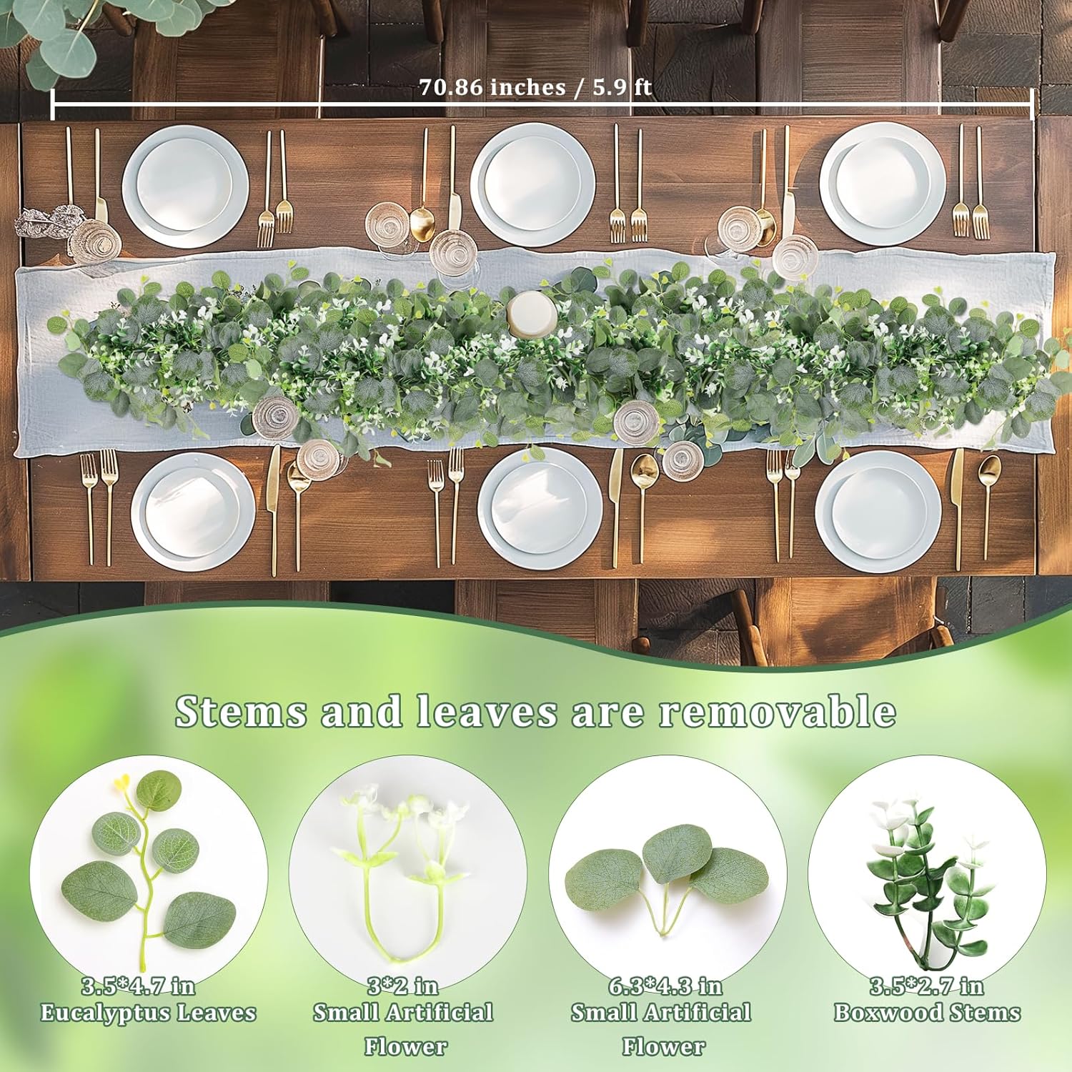 - 𝙉𝙞𝙘𝙚 & 𝙁𝙪𝙡𝙡 & 𝘽𝙚𝙖𝙪𝙩𝙞𝙛𝙪𝙡: Discover the beauty and vitality of life in our charming mix of eucalyptus garland! Our faux eucalyptus garlands mixed eucalyptus leaves and boxwood leaves together, which makes the whole vine look full, beautiful and filled with rich layers. The vibrant display of greenery garland interspersed with gentle white blooms adds a natural, elegant touch to any decor.