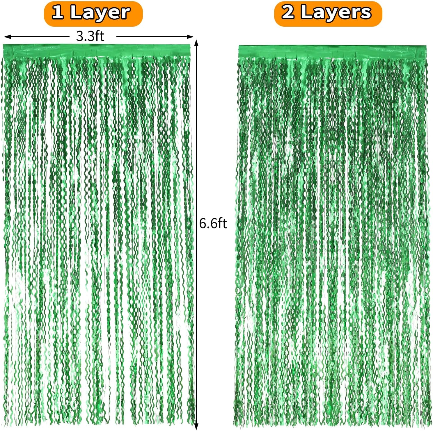 - Package Contents: 4 pack wavy foil fringe curtains,each curtain is 3.3ft x6.6ft,You can cut the metallic backdrop into the suitable length for use,Wonderful accessories for decorating doors and walls