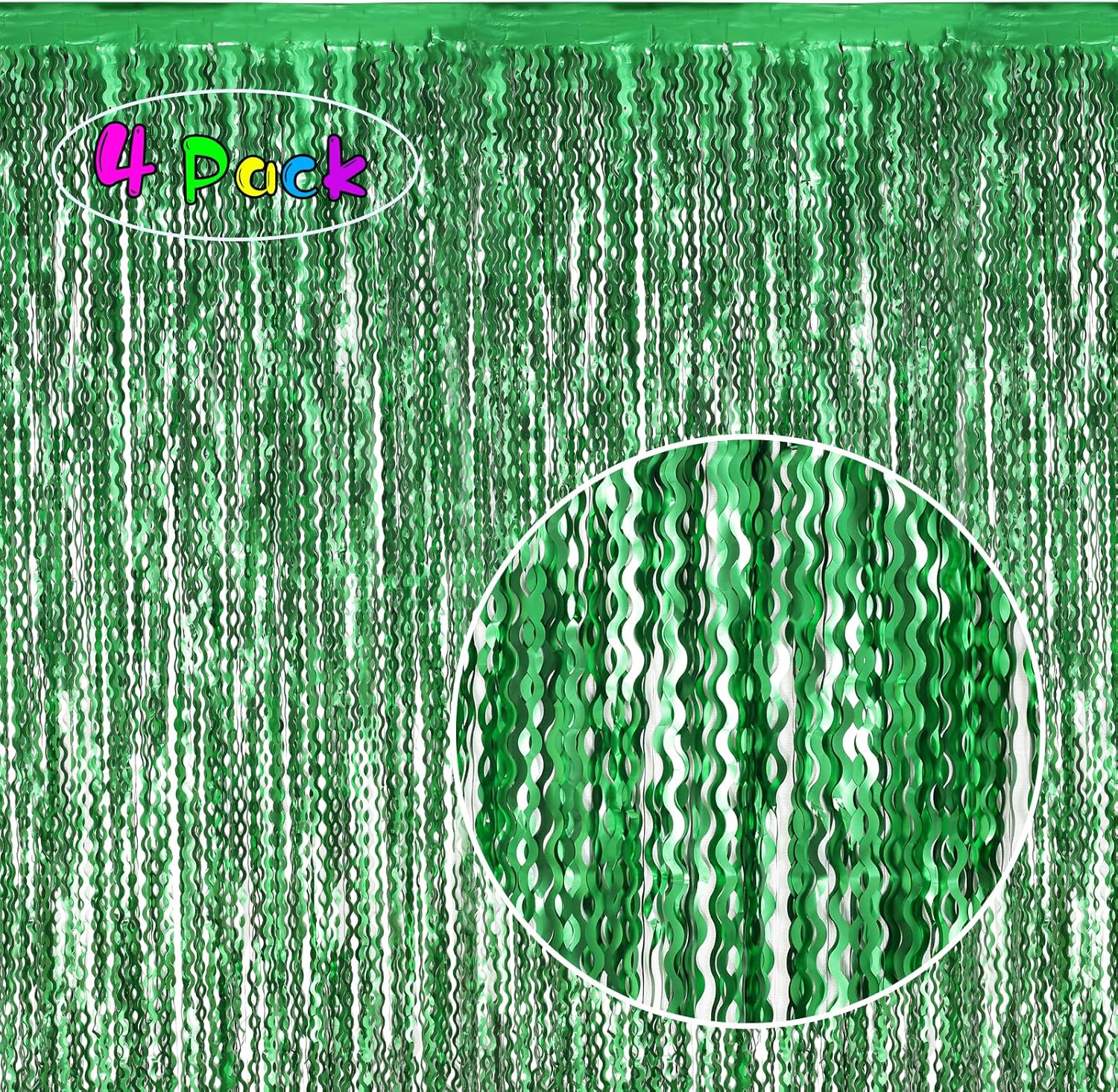 4Pcs Wavy Green Fringe Backdrop -3.3x6.6ft Green Streamer Foil Curtains for Jungle Party Decorations | St Patricks Day Decorations | Football Decorations | Xmas