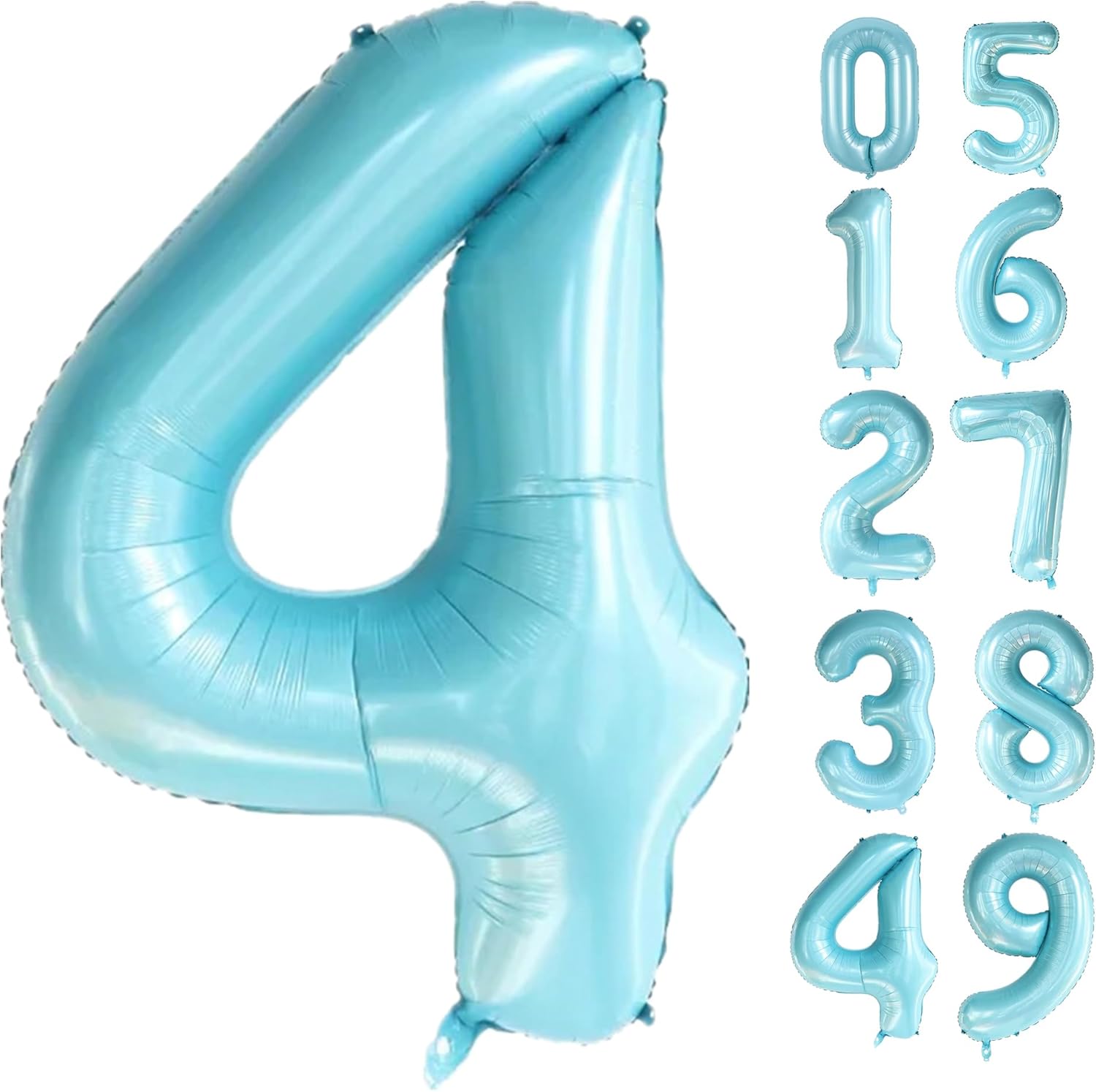 40 Inch Blue Large Numbers Balloons0-9,Number 4 Digit Helium Balloons,Foil Mylar Big Number Balloons for 4th 14 Birthday Party Supplies Decorations Anniversary Wedding Supplies Decorations(Blue No 4)