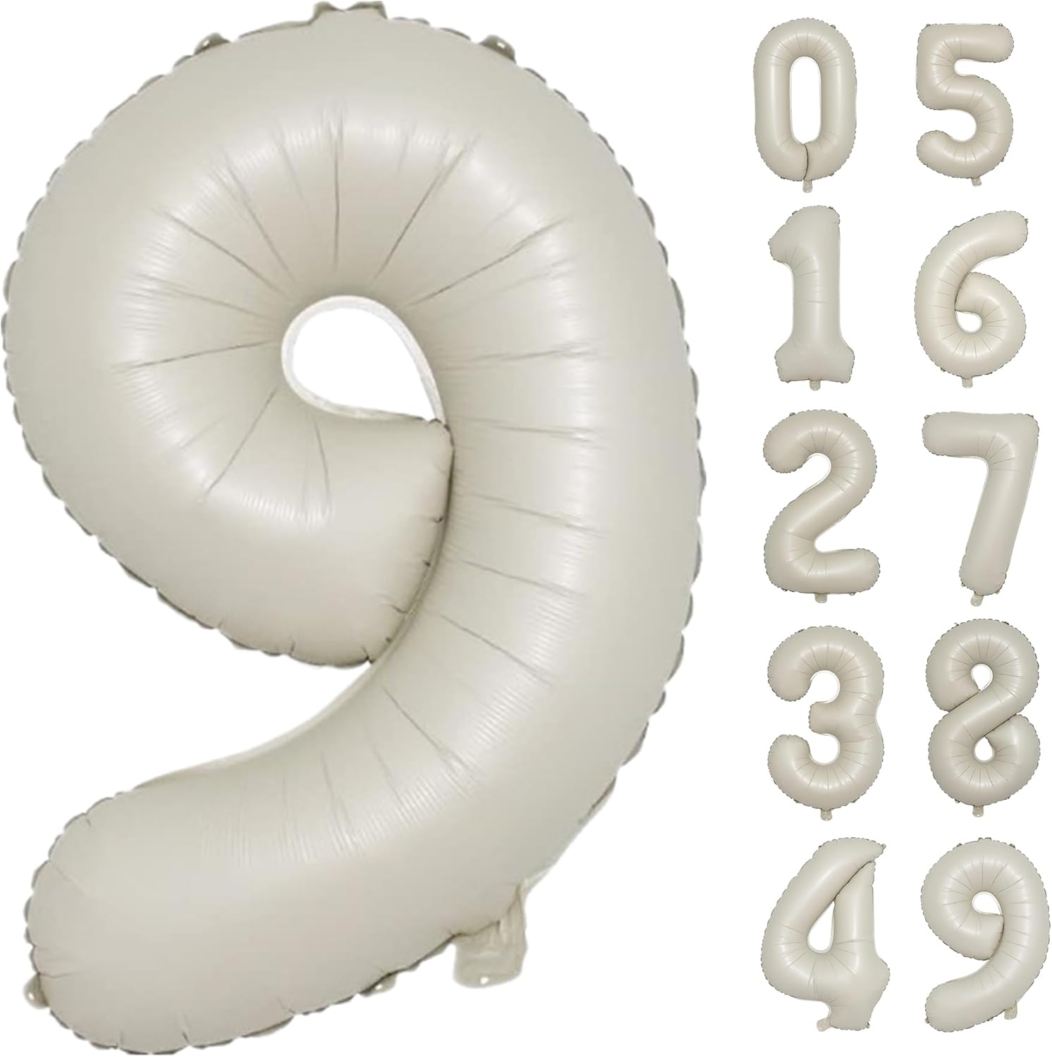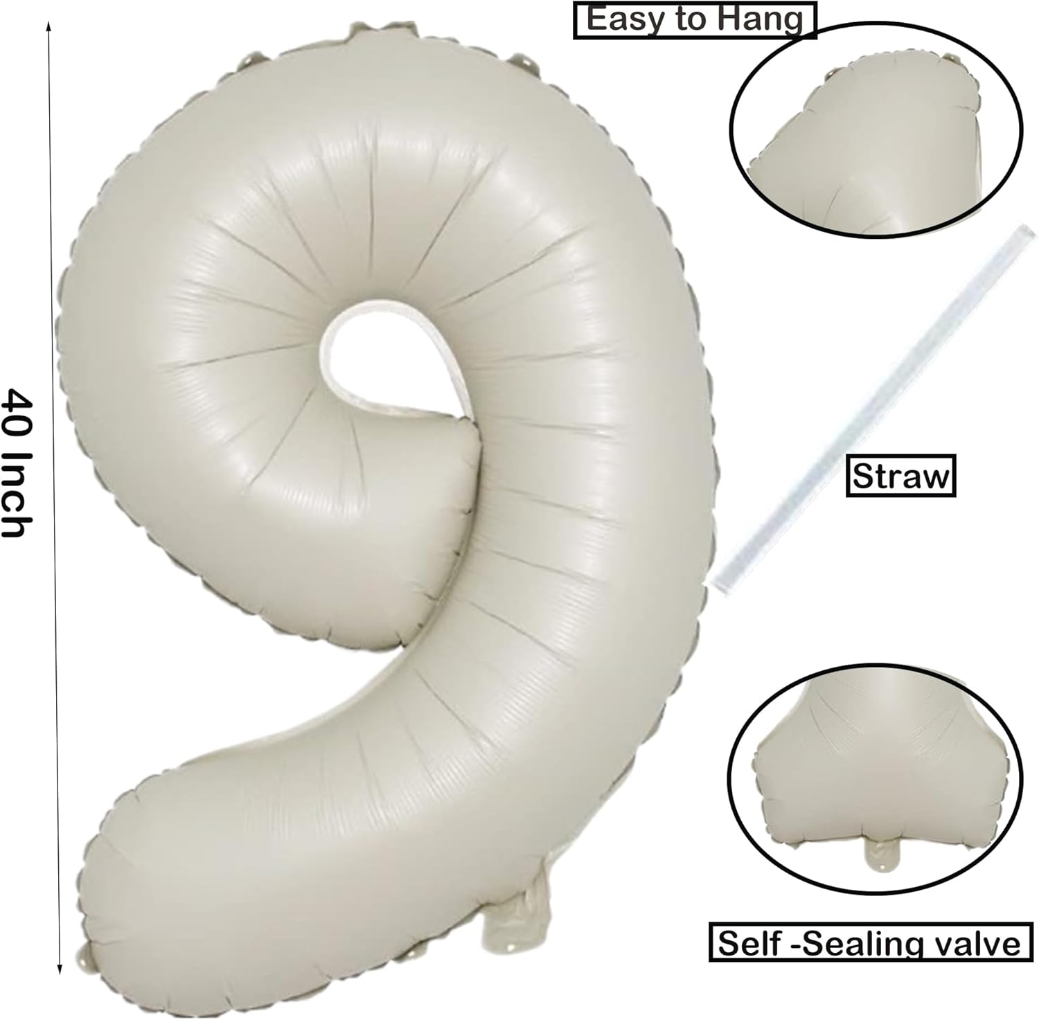 40 Inch Cream White Number 9 Balloon Mylar Big Foil Helium Number 19 29 39 49 59 69 79 89 99 Balloon for Party,Digital 9th Birthday Party Wedding Decorations, Boy Baby Shower Decorations