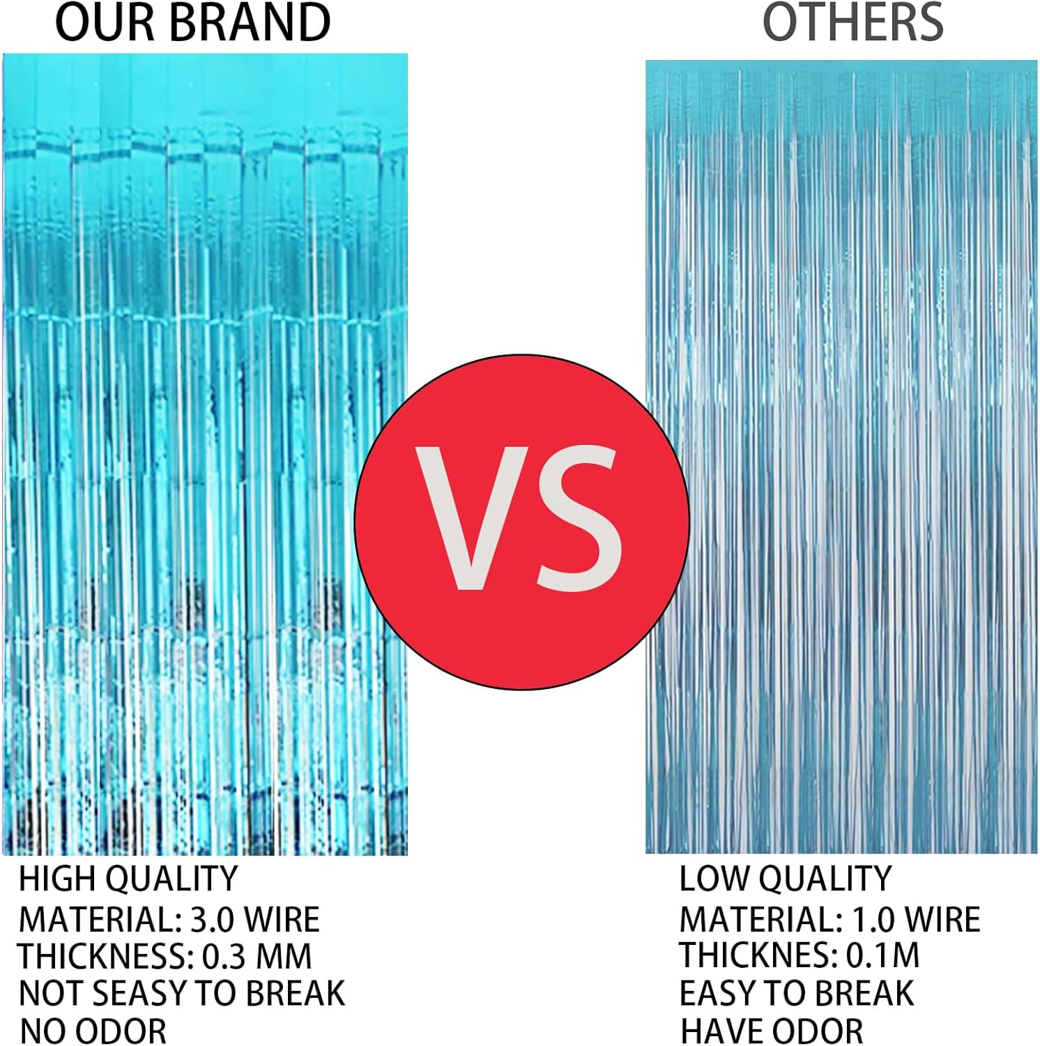 - Reflective effect:Foil fringe curtains have a thickness of 0.4mm, making them thicker and less likely to wrinkle or crease, resulting in a durable and long-lasting decoration. Additionally, Keyali Foil fringe streamers are made of sturdy and flexible PET material, making them resistant to breaking or tearing.Metallic streamers come in a range of beautiful colours with a shiny, iridescent, and reflective surface that creates an eye-catching and mesmerising effect!