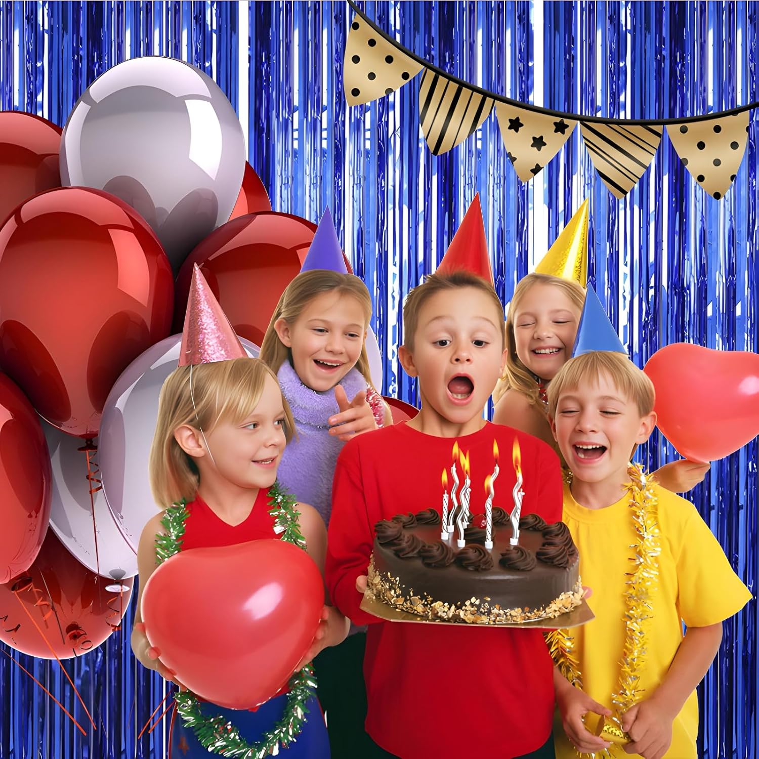 - Pair with other party decorations: Tinsel backdrop curtain can be paired with LED lights, balloons, banners, wreath, garlands, swirl streamer, tissue paper pom poms.