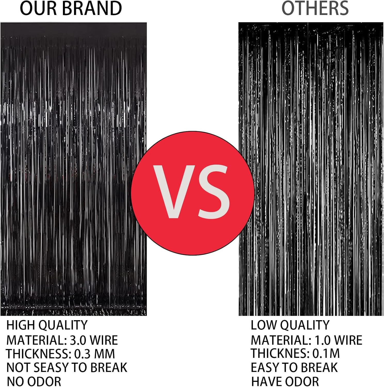 - 3 Pack foil fringe tinsel backdrops: each measuring a whopping 3.3 ft x 8.3 ft.Long enough for indoor or outdoor parties. Also can be cut in suitable length for your birthdays Party decorations These backdrops are perfect for creating stunning party decorations, event backdrops, and photo booths that will leave your guests in awe.