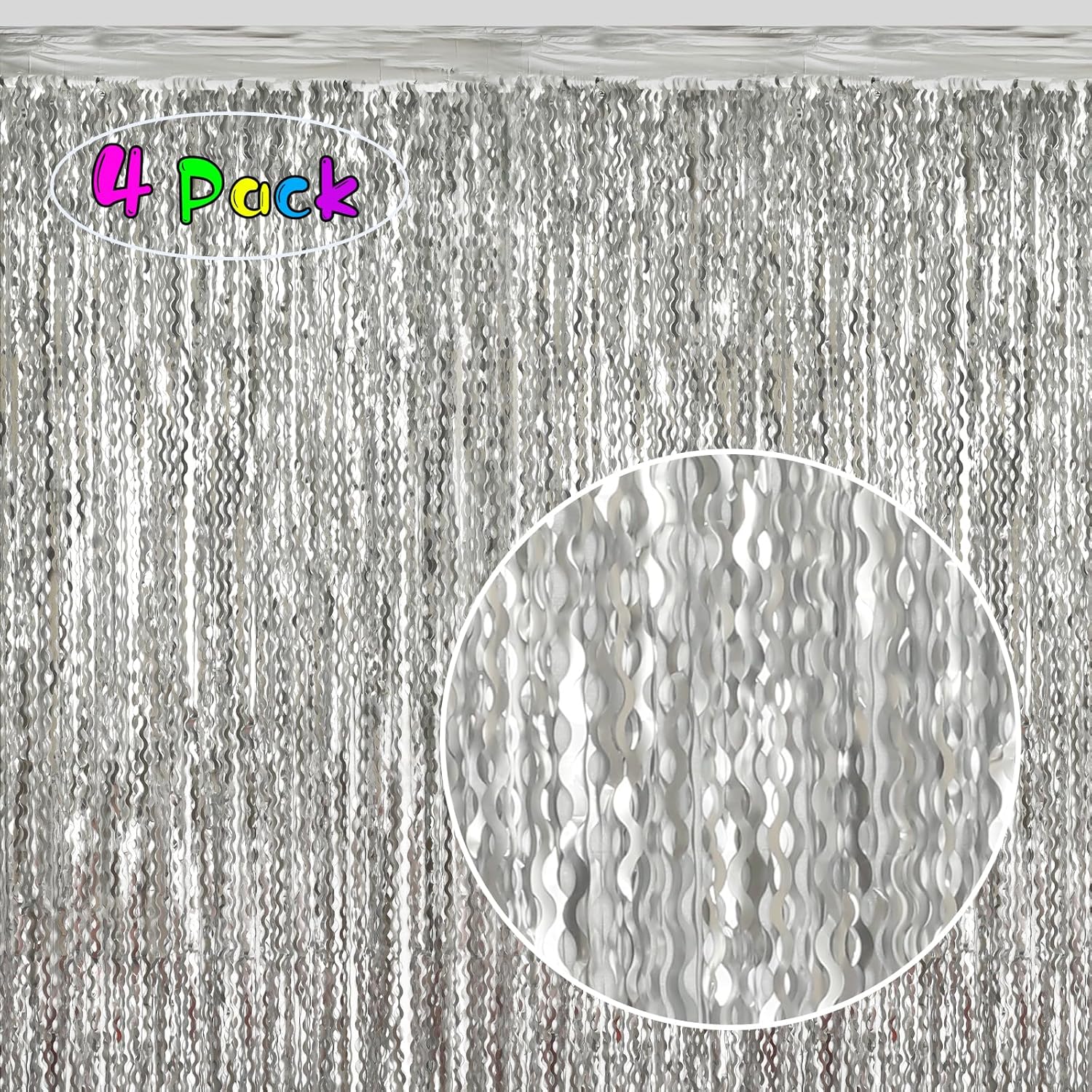 - Package Contents: 4 pack wavy foil fringe curtains,each curtain is 3.3ft x6.6ft,You can cut the metallic backdrop into the suitable length for use,Wonderful accessories for decorating doors and walls