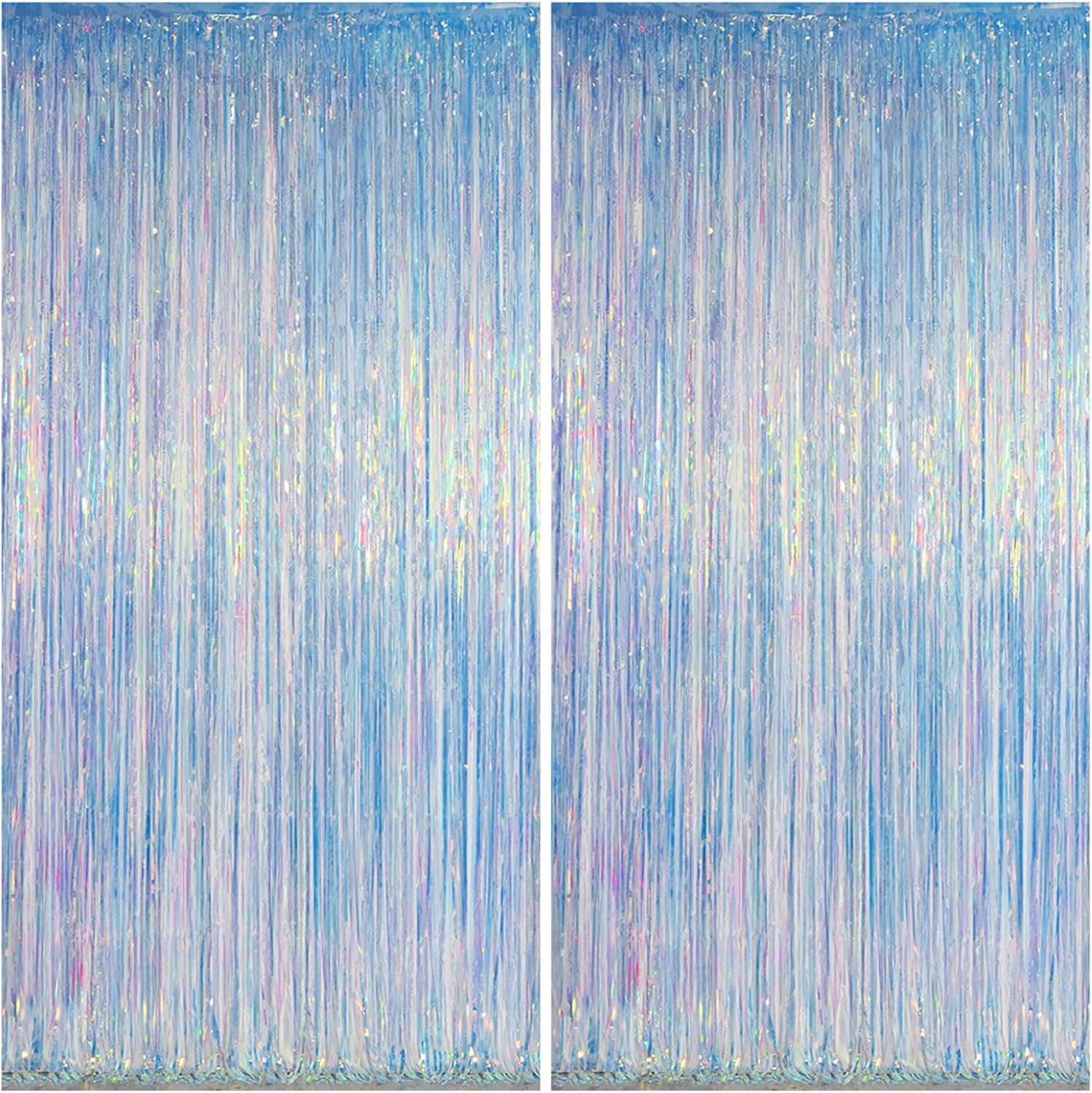Melsan Iridescent Foil Fringe Backdrops Party Decorations - 2 Pack 3.2 x 6.5 ft Metallic Tinsel Photo Backdrop Curtains for Mermaid Unicorn Birthdays Parties - Iridescent 2 Packs