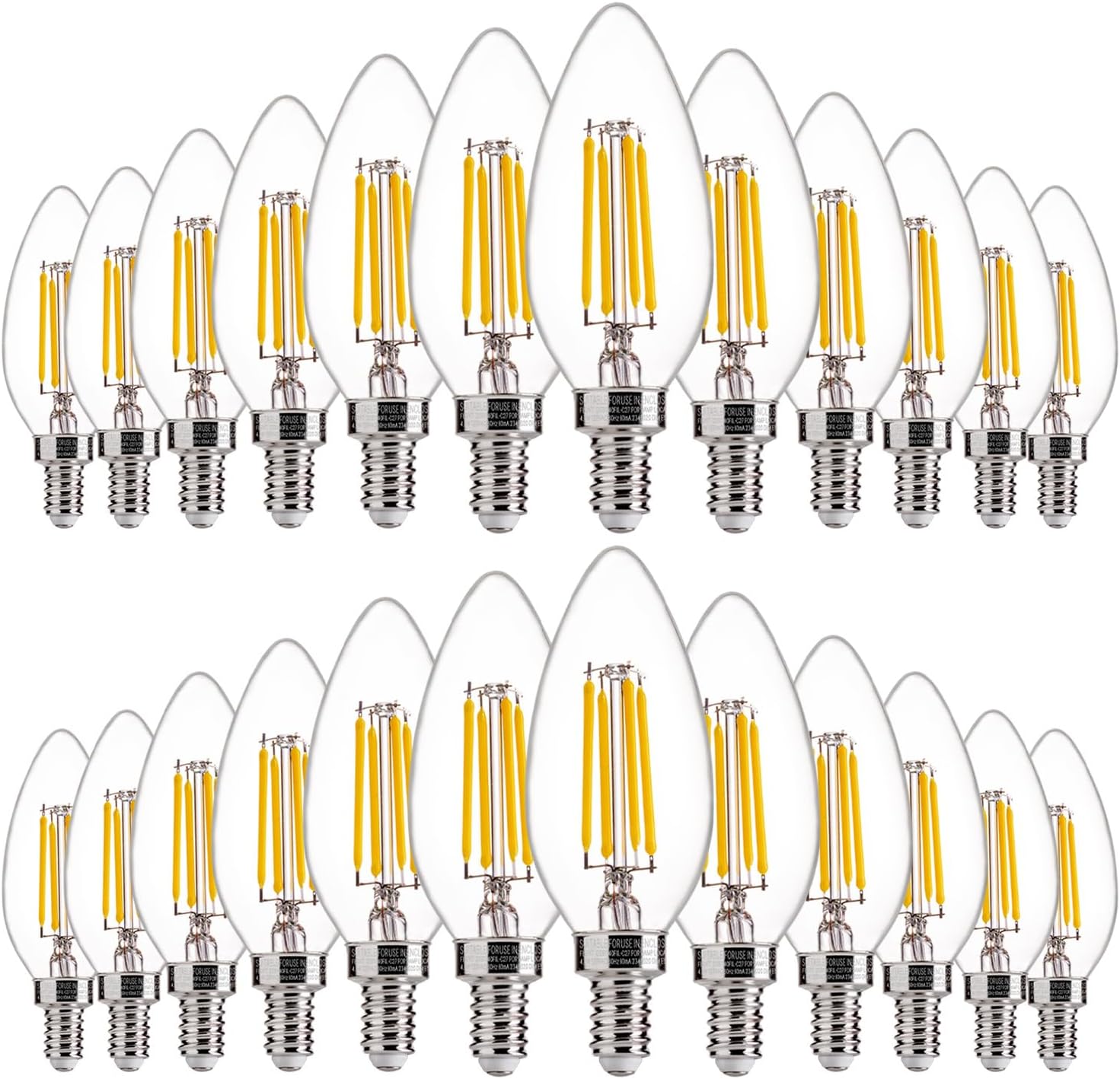 FLSNT 60W Equivalent LED Chandelier Light Bulbs, Dimmable LED B11 E12 Candelabra Base Bulbs, 3500K Natural White, 550LM, 24 Pack UL,CA65 Listed.
