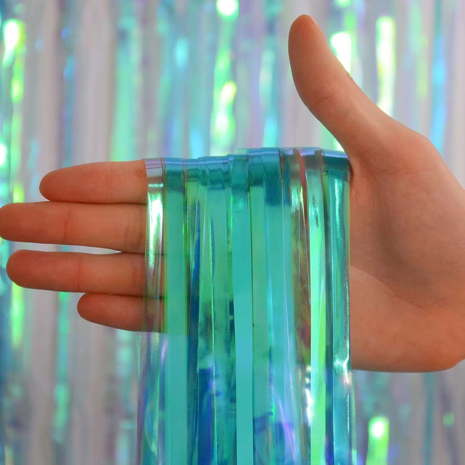 - Pack of 2: Includes 2 packs foil fringe curtains, enough to decorate your party backdrop and save your money. Each curtain is 3.2ft x 8ft. You can use 2 packs of the curtains side by side to make the backdrop larger, or overlap 2 pack of curtains to achieve a fuller and better look.