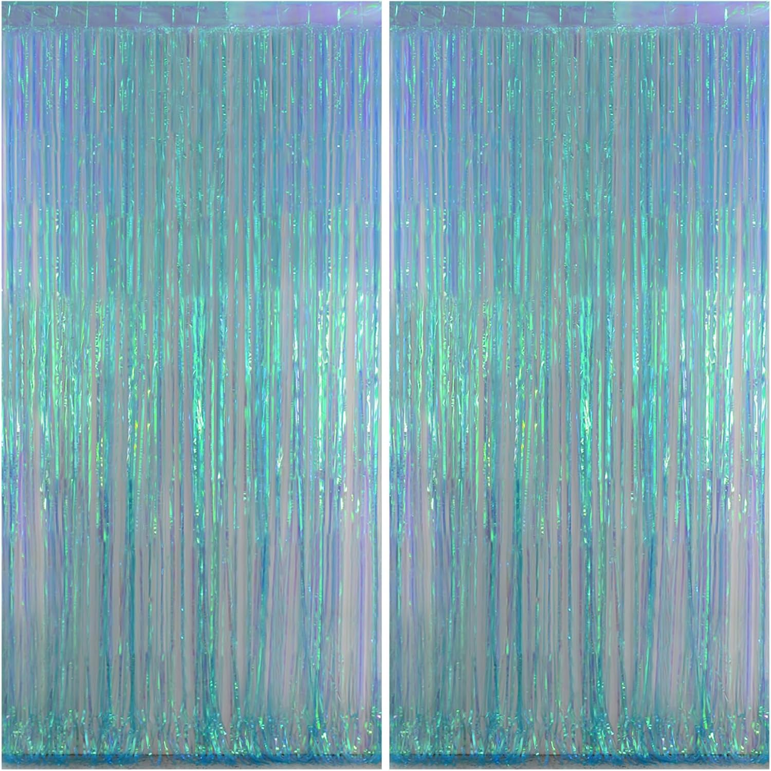 Melsan Fringe Backdrop Birthday Party Streamer Decorations - 2 Pack 3.2 x 6.5 ft Tinsel Backdrop Foil Curtains for Under The Sea Frozen Theme Birthdays Parties - Clear Blue 2 Packs