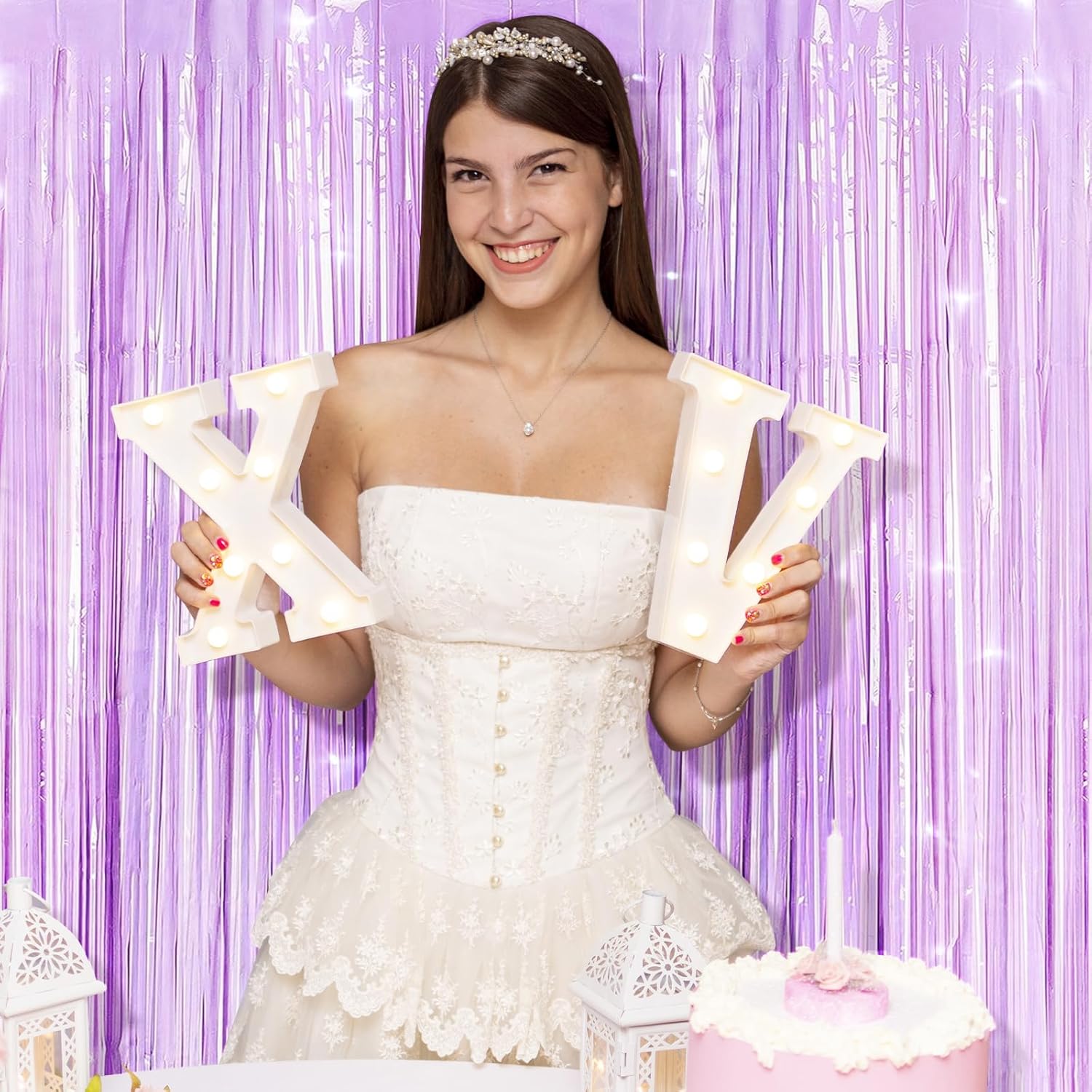 5 Pack Purple Foil Curtain Backdrop 3.2ft x 8.2ft Tinsel Foil Fringe Curtains Macaron Photo Booth Streamer Backdrop for Party Decorations Birthday Baby Shower Bachelorette Holiday (Pastel Purple)