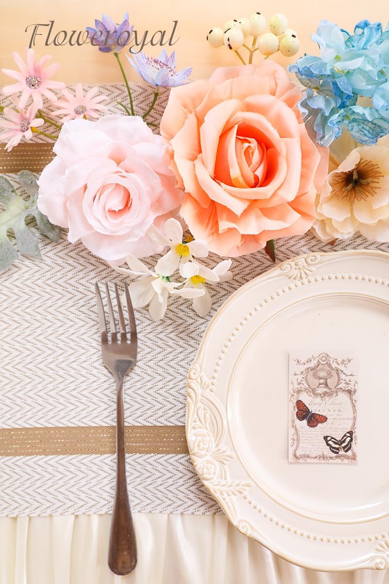 - ♔EASY TO DIY & CARE-Floweroyal fake flower is a box of pre-selected flowers by color, size and type. If you don't know how to make flower arrangements, we have picked out all the right kind of flowers for you to create. Our flexible plastic flower stems have built-in iron wires. It's very easy to stick in flower mud to arrangements or bend for DIY. Do not have to water and no dead leaves. Easy to clean and remove the dust. Not easy to fade. Easy to store for a long time and use repeatedly.