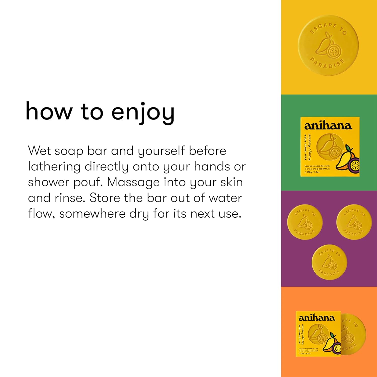 • VIBRANT SCENT: Anihana Mango Passion Feel-Good Soap is tropical and fresh, helping you find paradise among dreamy scents of juicy mango and ripe passionfruit with every wash