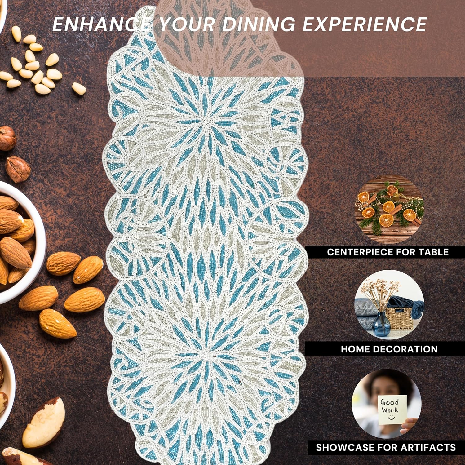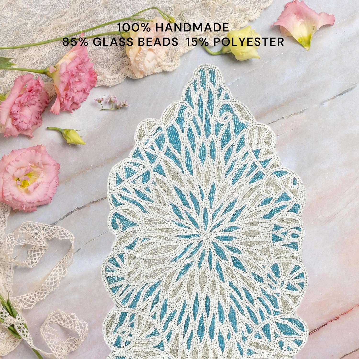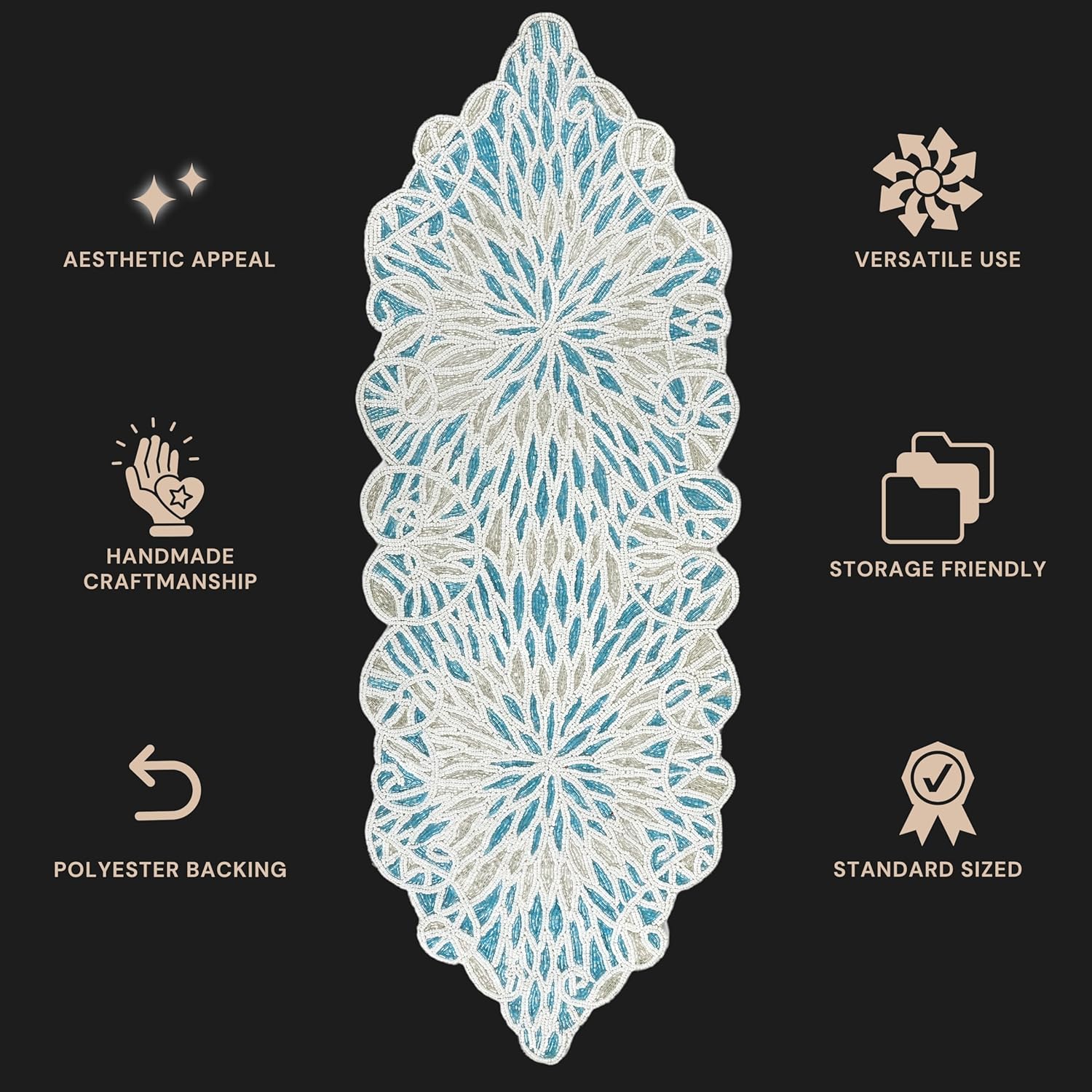 - ✅ CRAFTED FROM GLASS BEADS & POLYESTER: Premium hand-beaded runner with sturdy backing offers durability and luxury shine.
