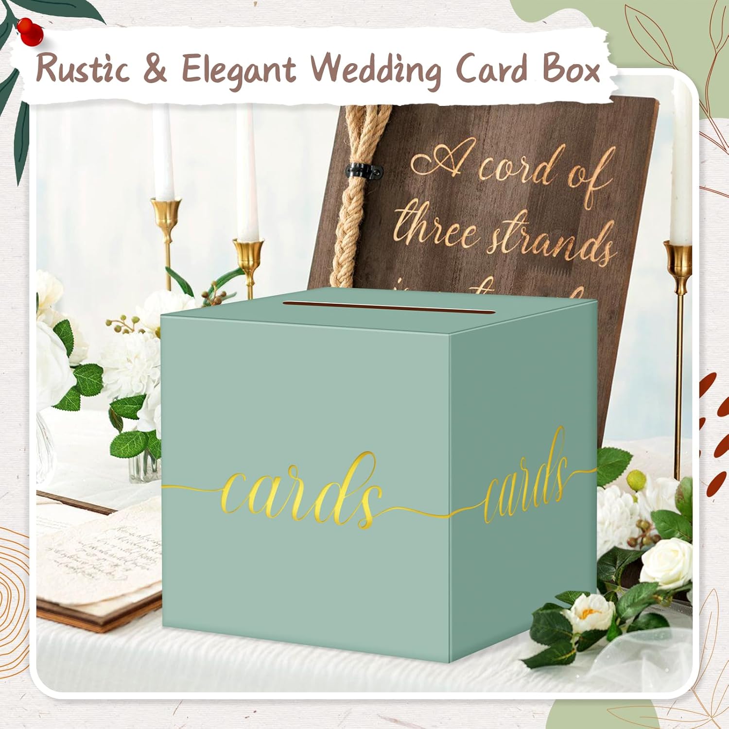 - Gold Foil Sage Green Birthday Card Box Size: Pack of 1, card box measures 8.7 x 8.7 x 8.7 inches, large size to hold all sizes of envelope cards for weddings or parties.