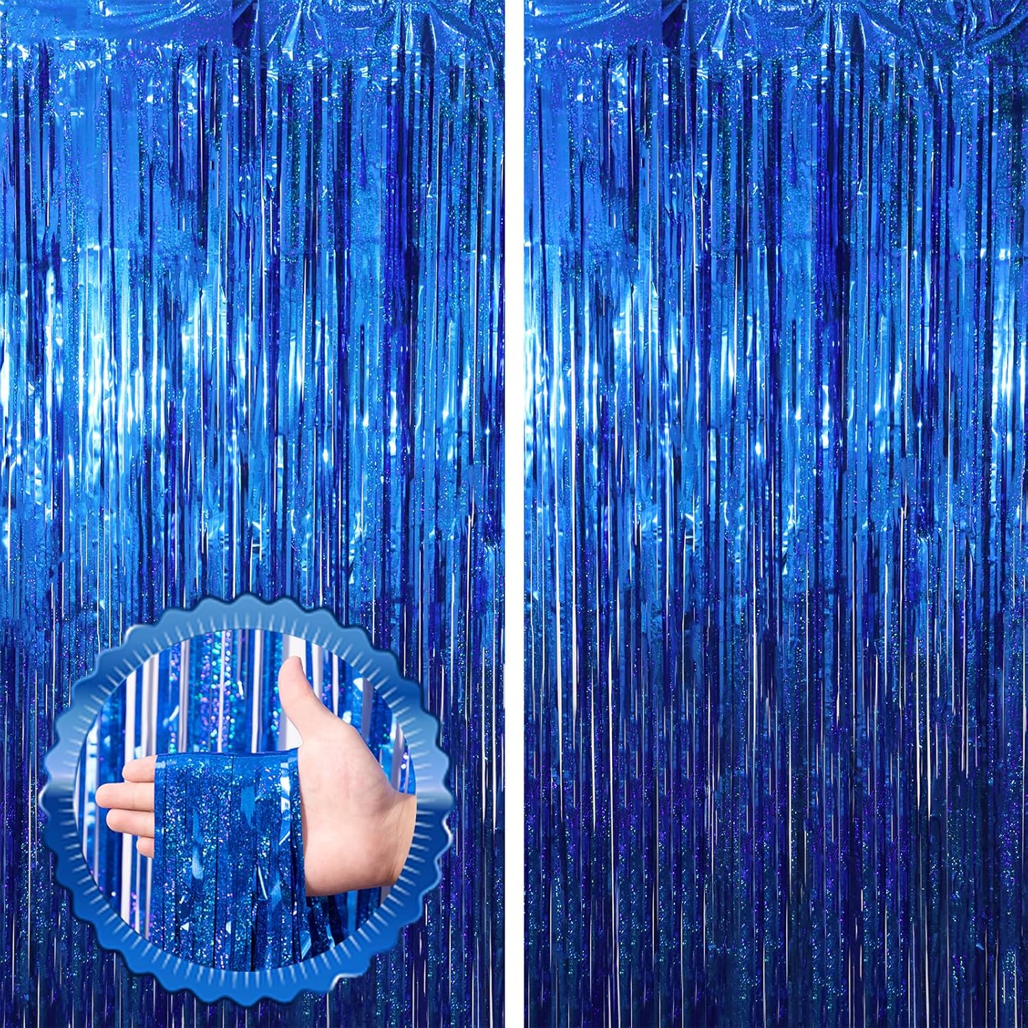 - Stunning Decorative Set: You'll receive 2 pcs royal blue foil fringe backdrop curtains, each measuring 3.28 ft (wide)×6.56 ft (drop). Enough length foil fringe curtains backdrops are perfect for the door or wall to create an impressive decoration
