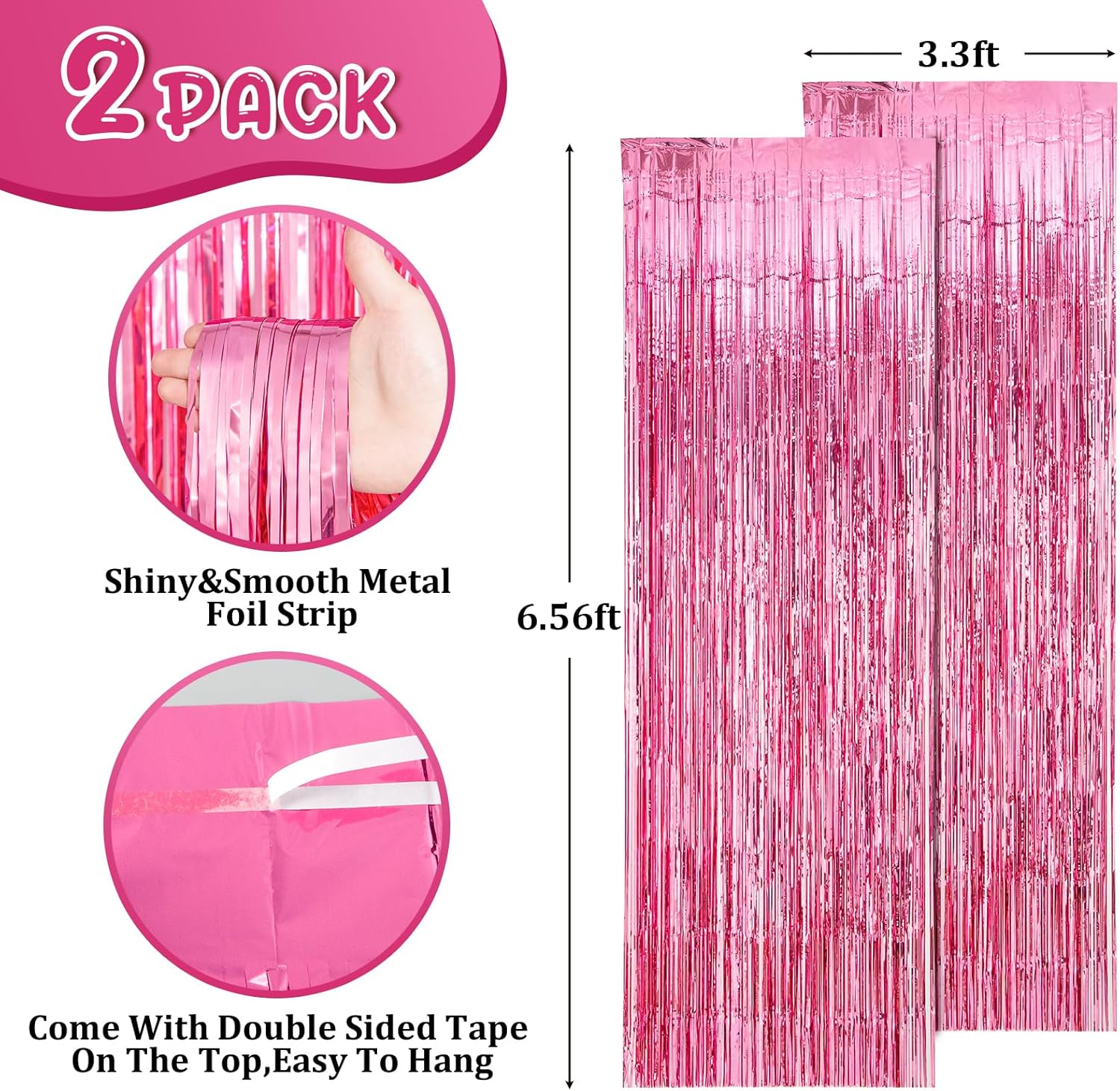 2 Pack Pink Tinsel Foil Fringe Curtains, Pink Party Decorations, Metallic Tinsel Party Streamers Backdrop for Birthday Baby Shower Graduation Wedding Bachelorette Party Decorations