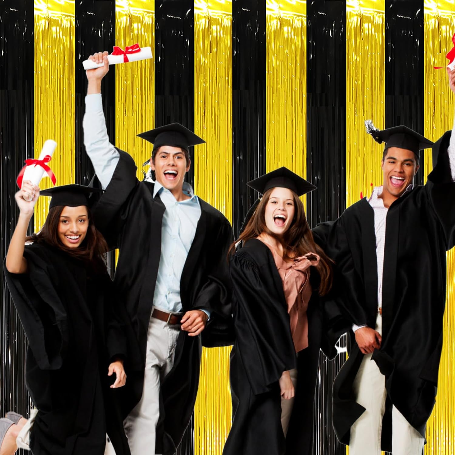 - Eye-Catching Design: These gold black foil fringe tinsel backdrops boast vibrant colors and a shimmering effect that reflects light beautifully. Your friends will be mesmerized by the captivating atmosphere these curtains create