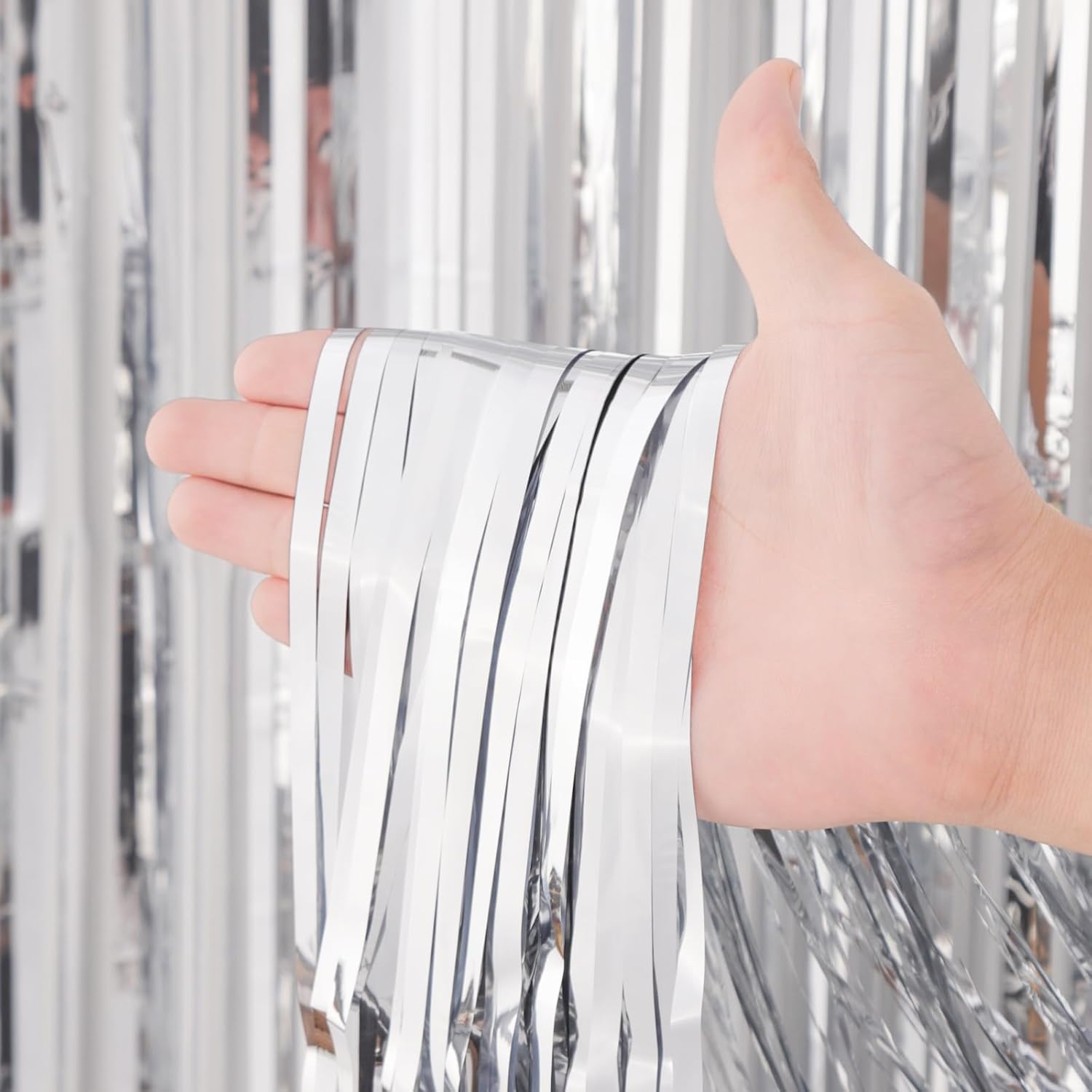 - Premium Quality: Crafted from shiny PET tinsel, these silver fringe curtains are designed to be light weight, easy to hang, and resistant to wear and tear. The metallic party streamers reflect light beautifully, creating a mesmerizing visual effect