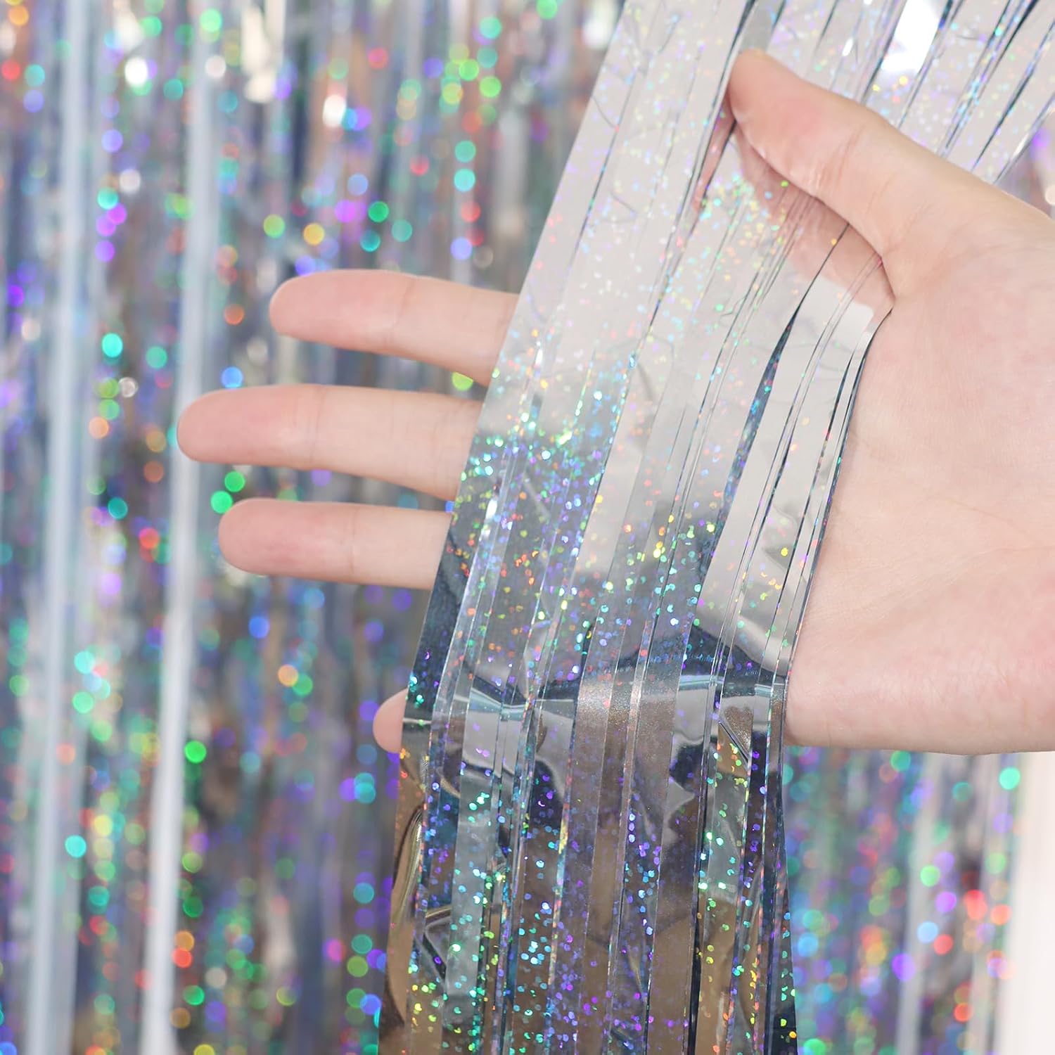 - Eye-Catching Design: These silver foil fringe tinsel backdrops boast vibrant colors and a shimmering effect that reflects light beautifully. Your friends will be mesmerized by the captivating atmosphere these curtains create
