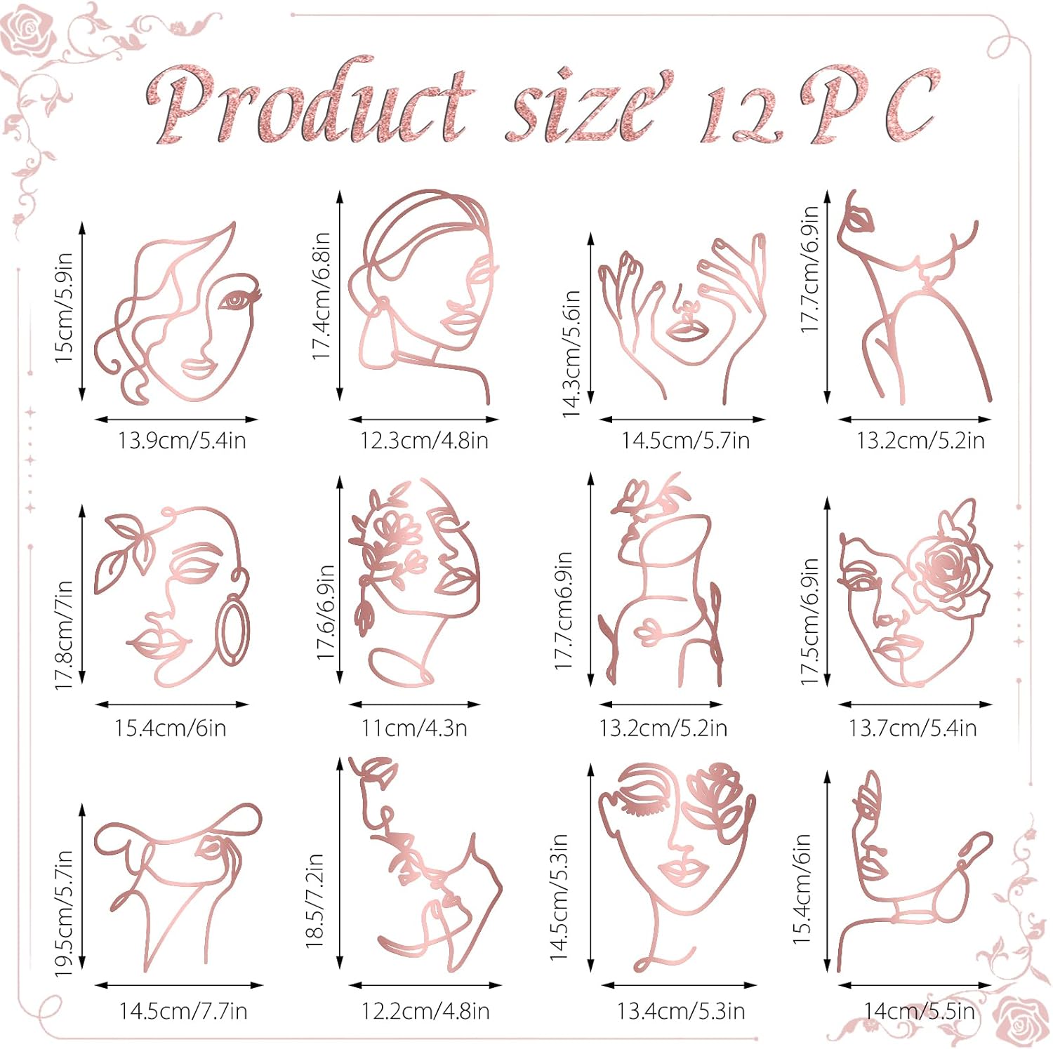 12 Pcs Acrylic Lady Face Cake Topper Minimalist Art Happy Birthday Cake Toppers Women Wedding Cake Decoration for Wedding Birthday Party (Rose gold)