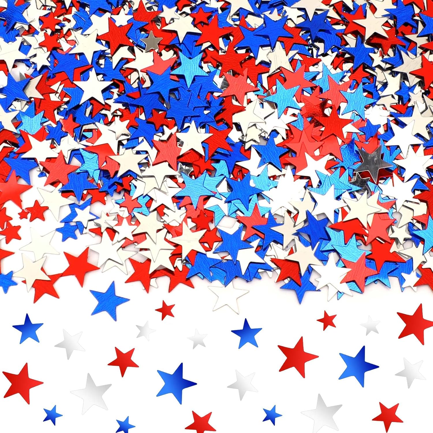 - Red White and Blue Theme Design: Patriotic confetti are designed in red, white and blue,star confetti focus on Independence Day themes. There are 3 sizes available: 3mm, 6mm, and 10mm, fit well with any decoration of Independence Day themes,the 4th of July decorations help you decorate various Independence Day parties