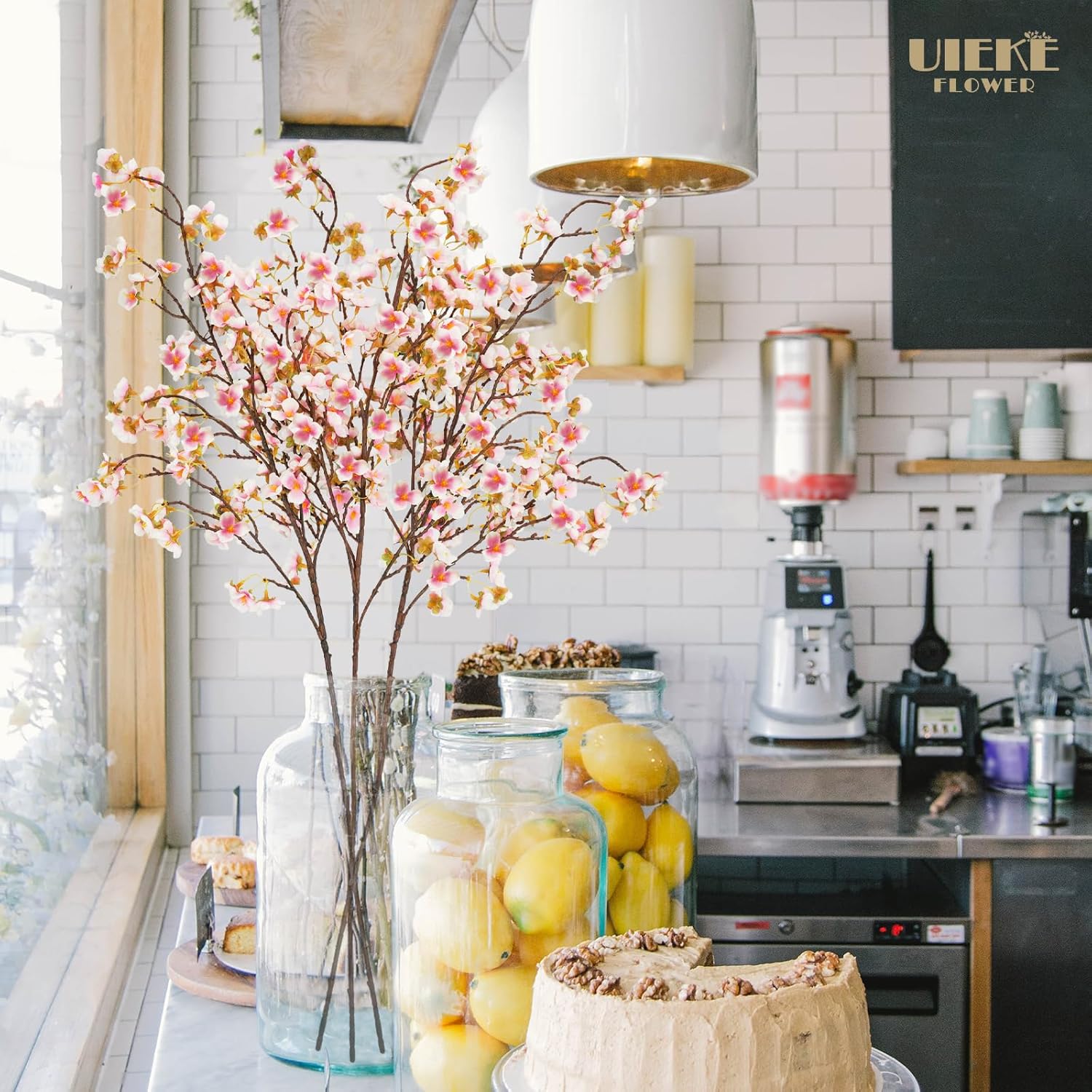 - GOOD THICKNESS: This silk cherry blossom branches have full color and rich layers. Silk cherry blossom petals are dense in quantity. Flower petals are thin and transparent very strong. Uieke follows the beauty of the natural form of flowers, each petals is naturally curled.