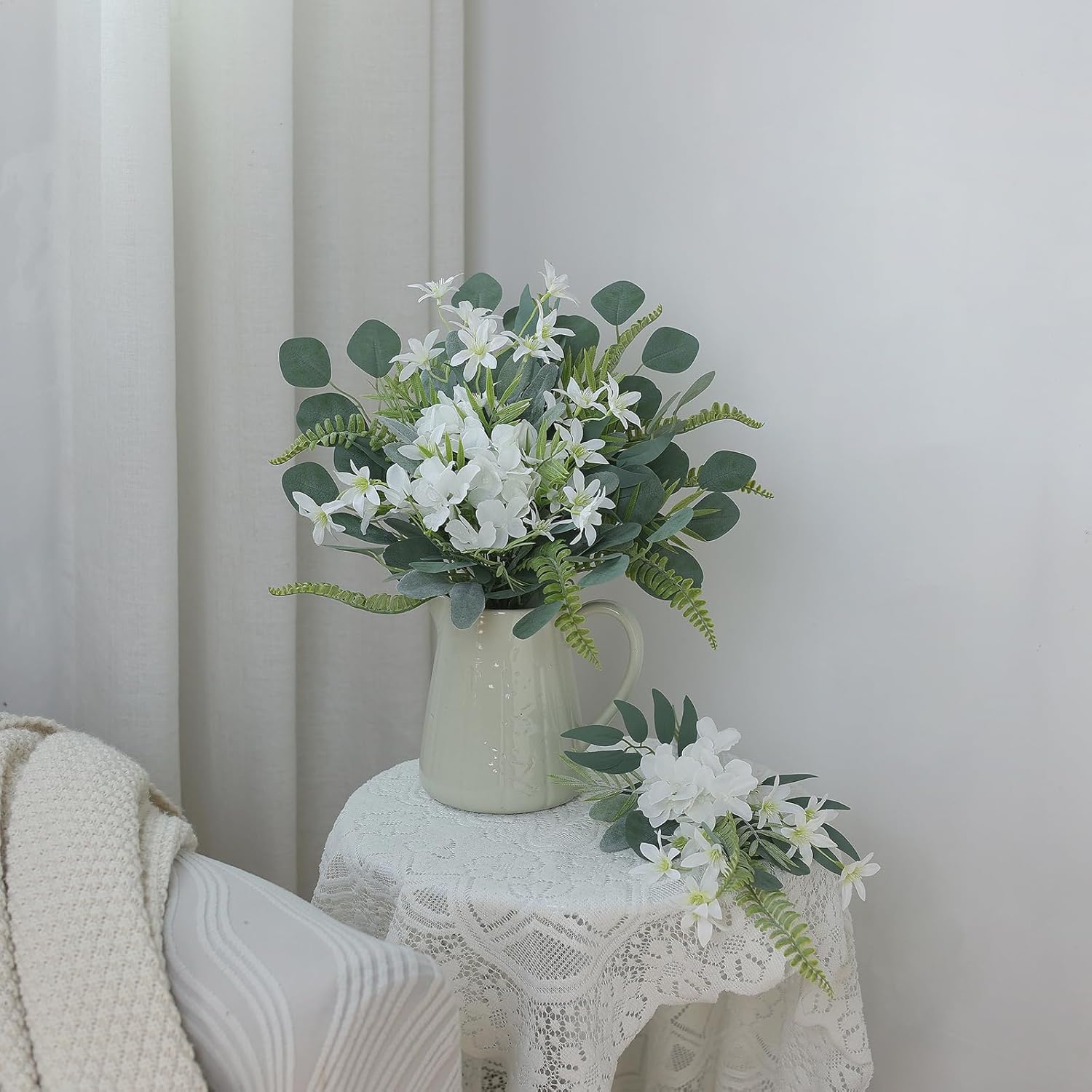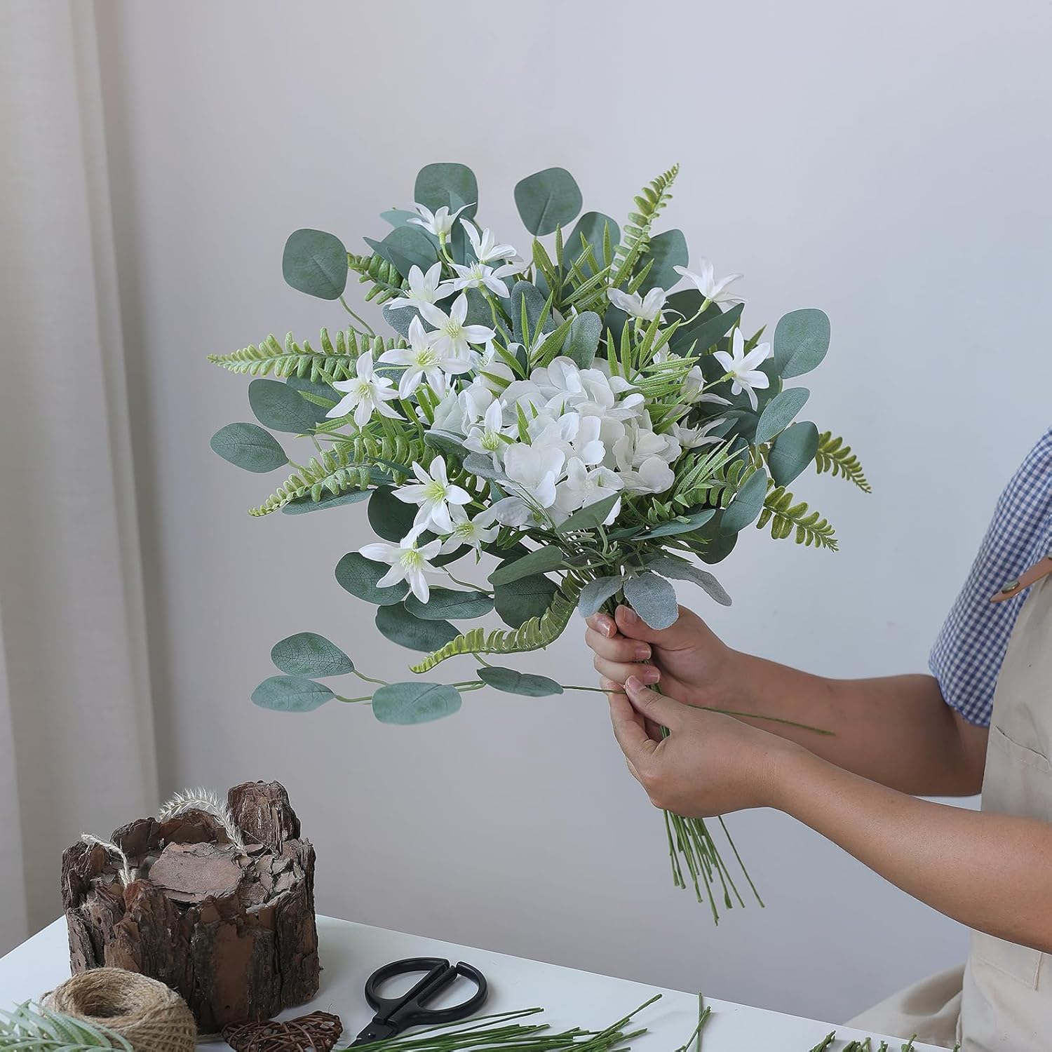 - 【Quality materials】: The leaves and flowers are made of quality silk and plastic, and the stems are made of wire, so you can bend or cut them as needed. These eucalyptus leaf stems and artificial flowers are made of quality materials that are durable enough that you don't have to worry about wilting or fading or spend time watering and caring for them.