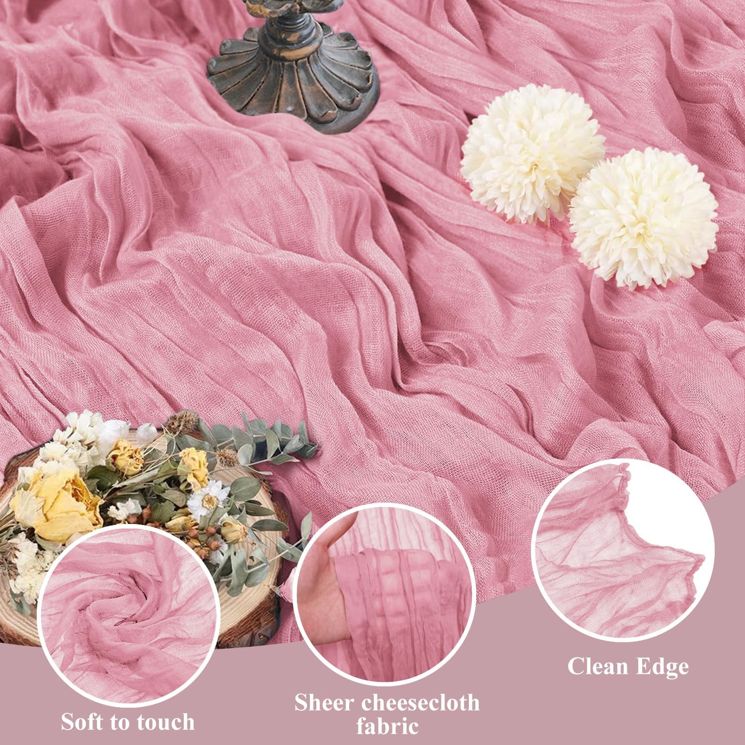 Asee'm Cheesecloth Table Runner 120 Inches Pink Boho Gauze Cheese Cloth Runner 10FT Rustic Sheer Dining Fall Table Runners for Thanksgiving Wedding Baby Shower Centerpiece Decoration