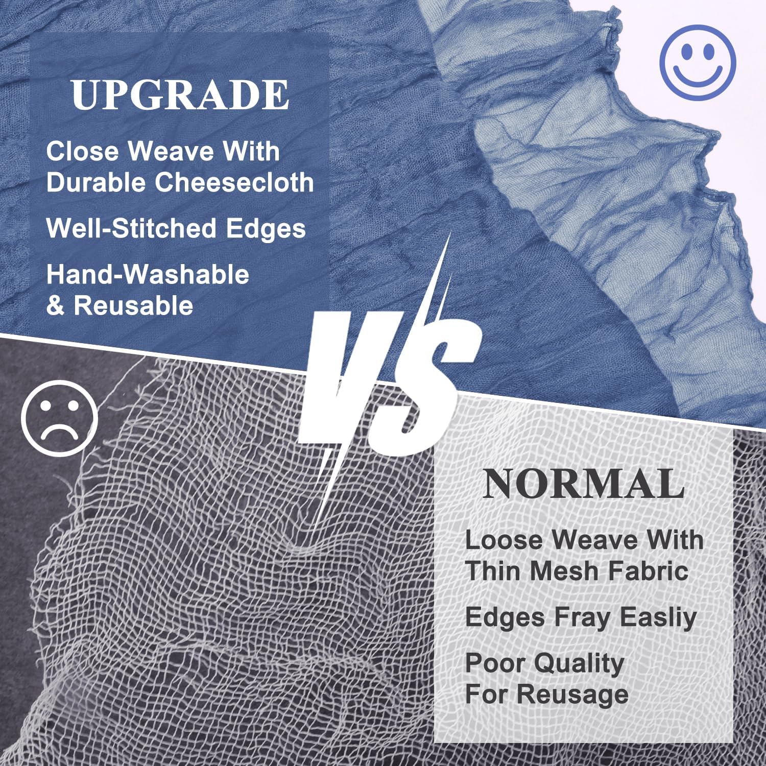Asee'm Cheesecloth Table Runner 120 Inches Blue Boho Gauze Cheese Cloth Runner 10FT Rustic Sheer Dining Table Runners for Fall Thanksgiving Wedding Baby Shower Centerpiece Decoration