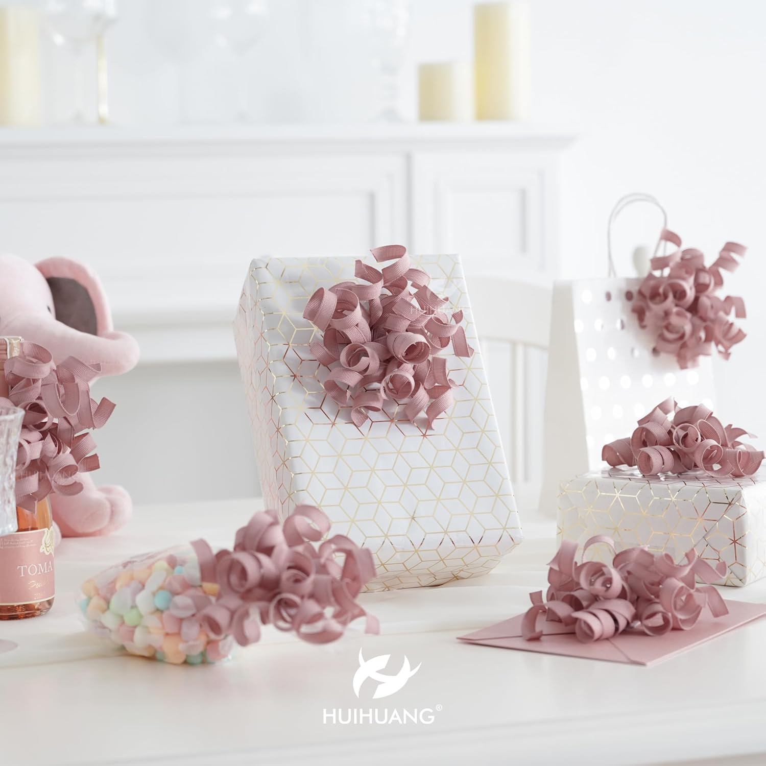 HUIHUANG Dusty Rose Bows for Gift Wrapping, Dusty Pink Curly Ribbon Bows Self Adhesive Burst Gift Bow for Presents, Wine Bottle, Treat Bags, Bridal Shower Wedding Party Favor - 6 Counts