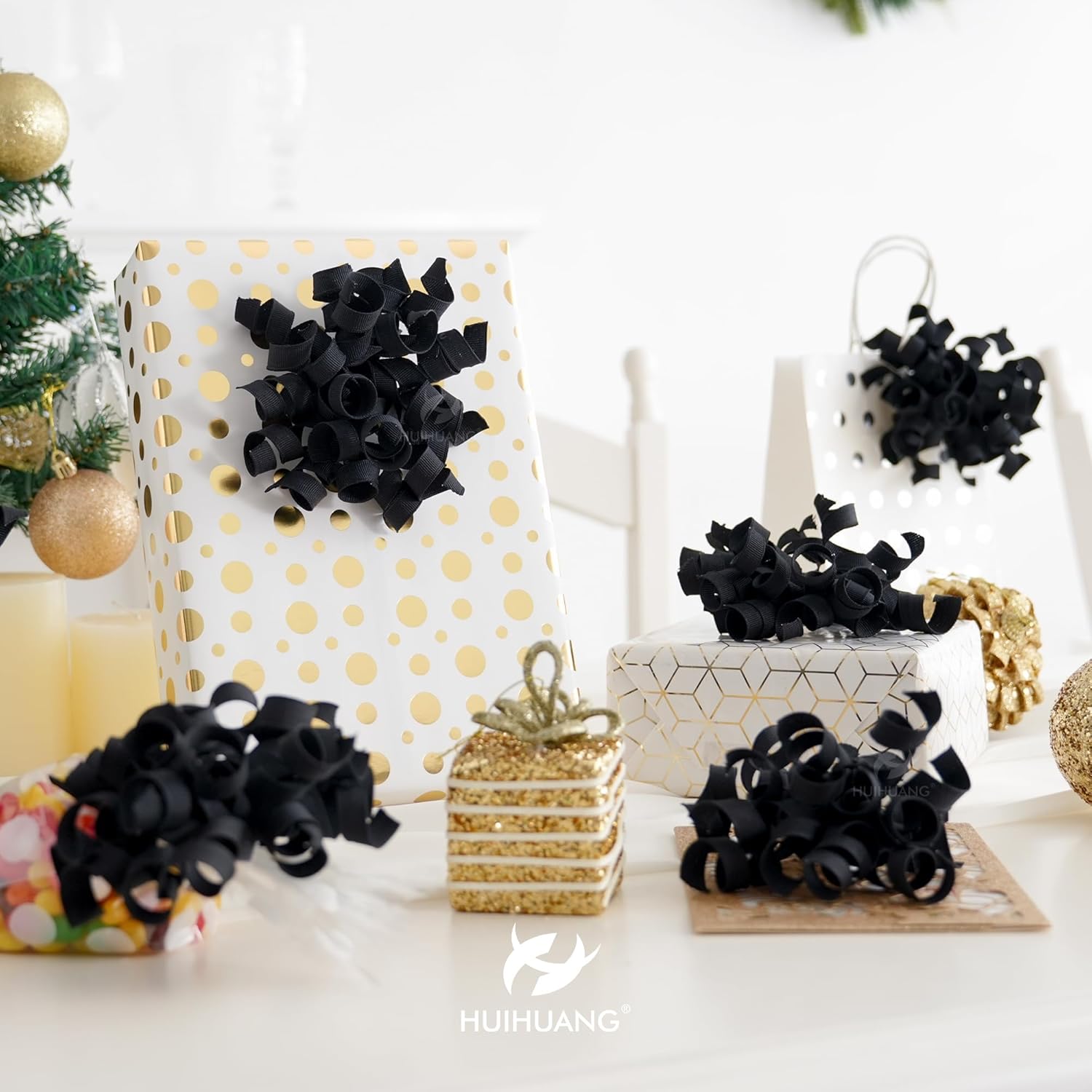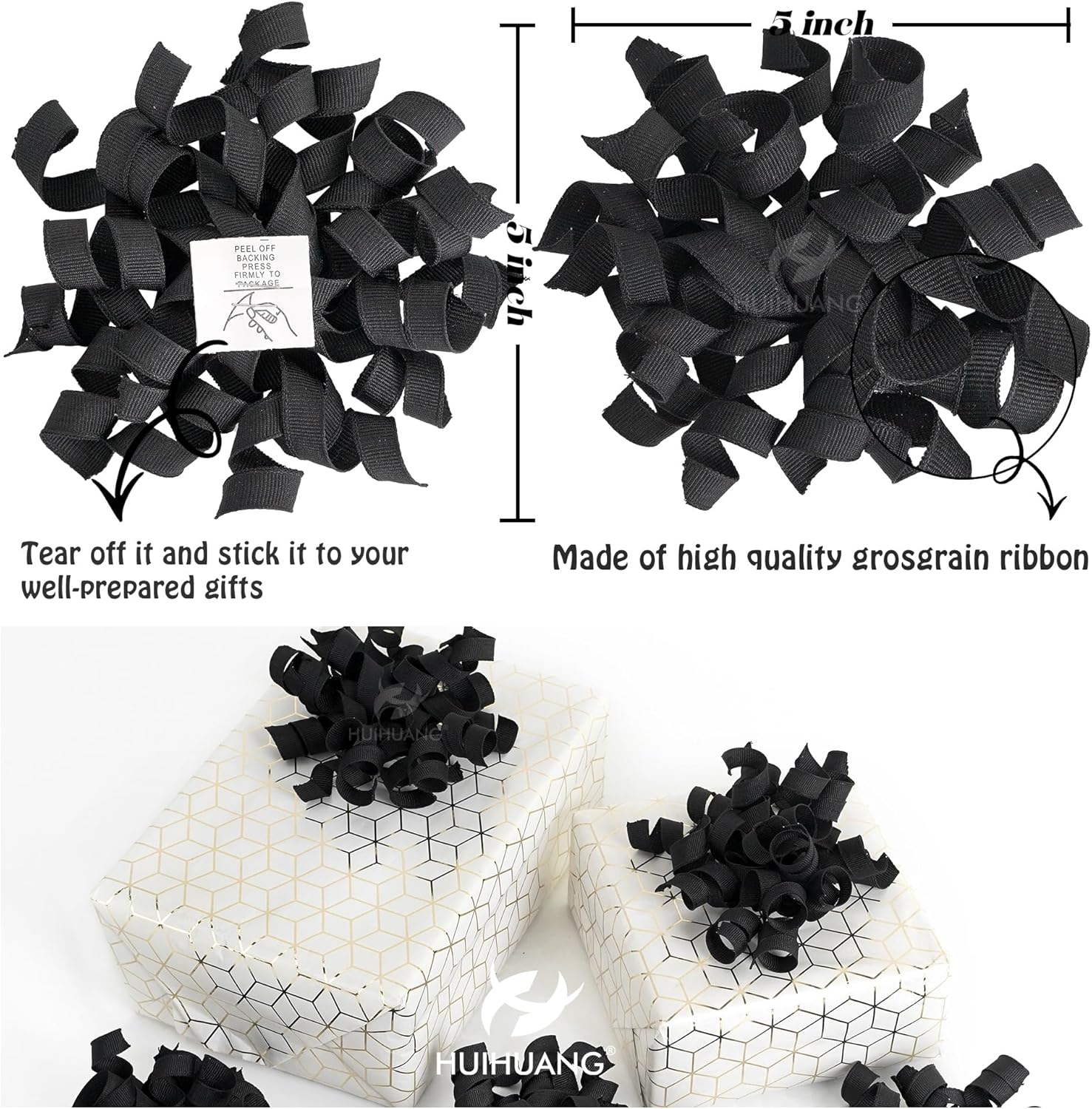- SIZE & PACK: Each package contains 6 pcs black curly bows are made of 12 strands of 3/8"(9mm) wide grosgrain ribbon that measure about 4.5~5" x 4.5~5"