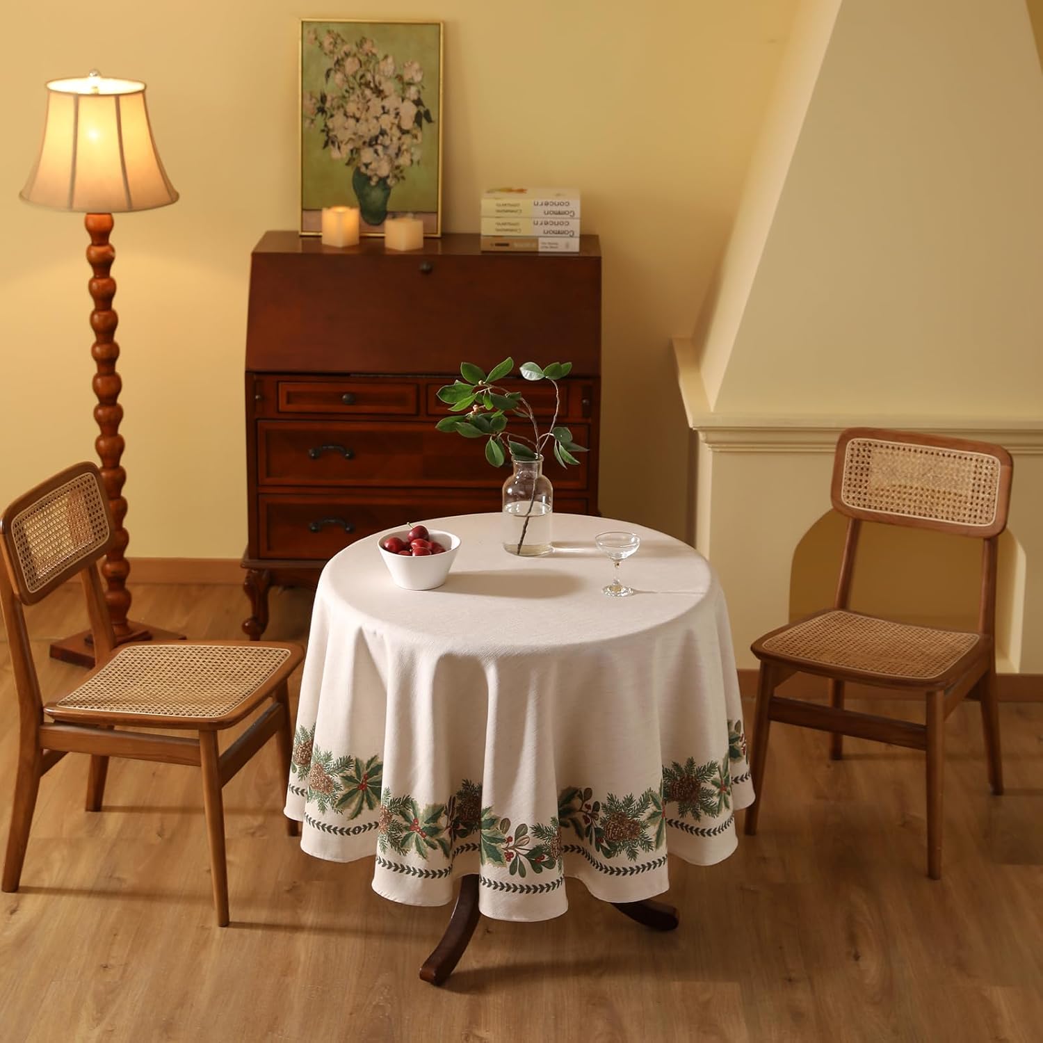 ISAENNE Designer Christmas Linen Small Round Tablecloth,Light Beige Western Elegant Table Cloth,Wrinkle Resistant Decor Tablecloths for Dining Thanksgiving Kitchen Christmas,Diameter 55"-Carol G