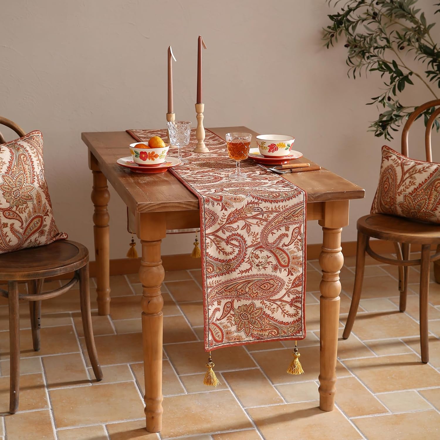 ISAENNE Designer Elegant Red Linen Table Runner 71 Inches Long,Vintage Paisley Pattern Durable Table Runners for Dining Tables,Thanksgiving,Kitchen Tables,Christmas,12"*71"-Chauffrey A