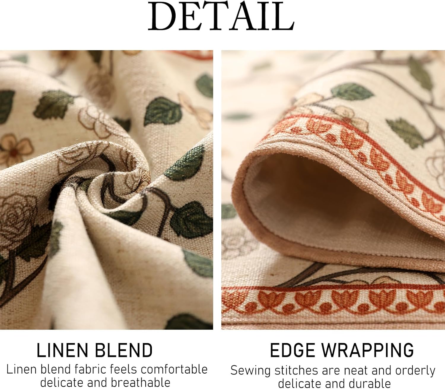 - Unique Design:Each table runner features patterns hand-drawn by our designers,showcasing exquisite details and rich textures for stunning visual appeal.The meticulous stitching ensures a smooth,wrinkle-resistant,and durable finish.With its fresh,rustic yet elegant style,it adds vibrancy and charm to your home decor